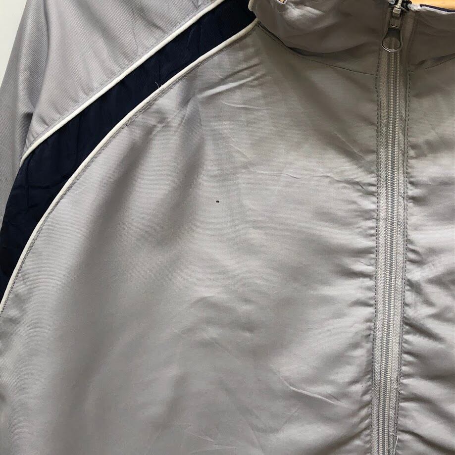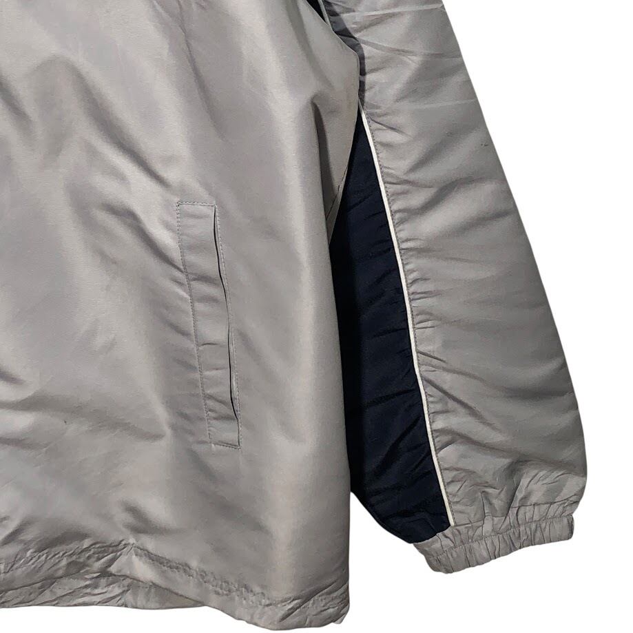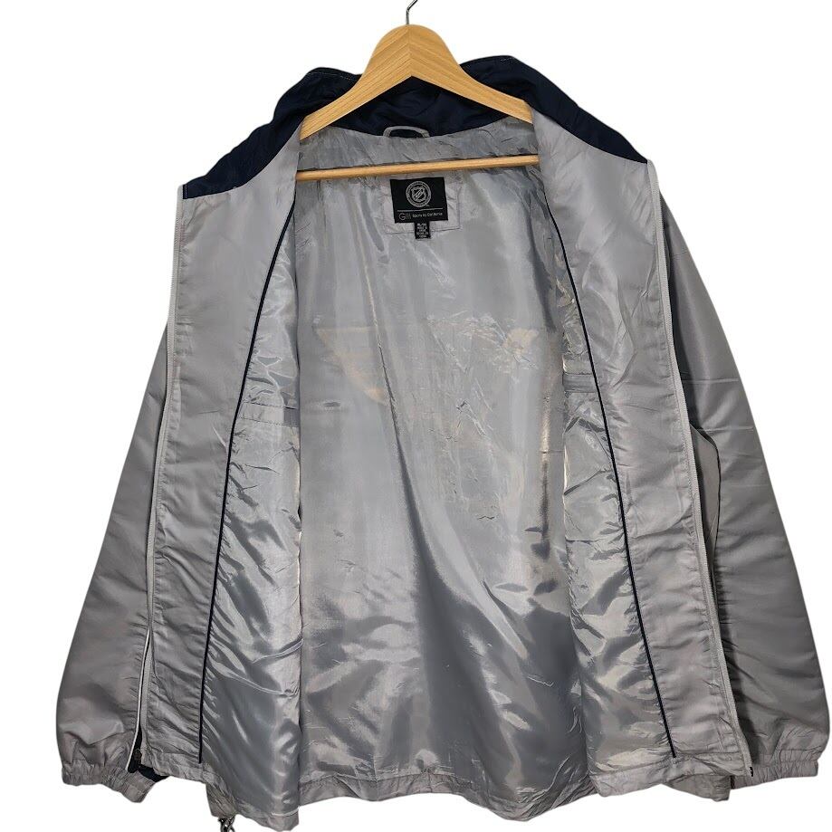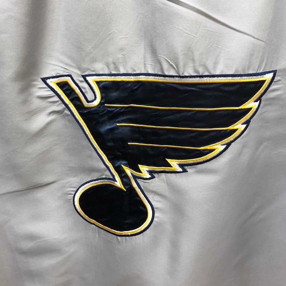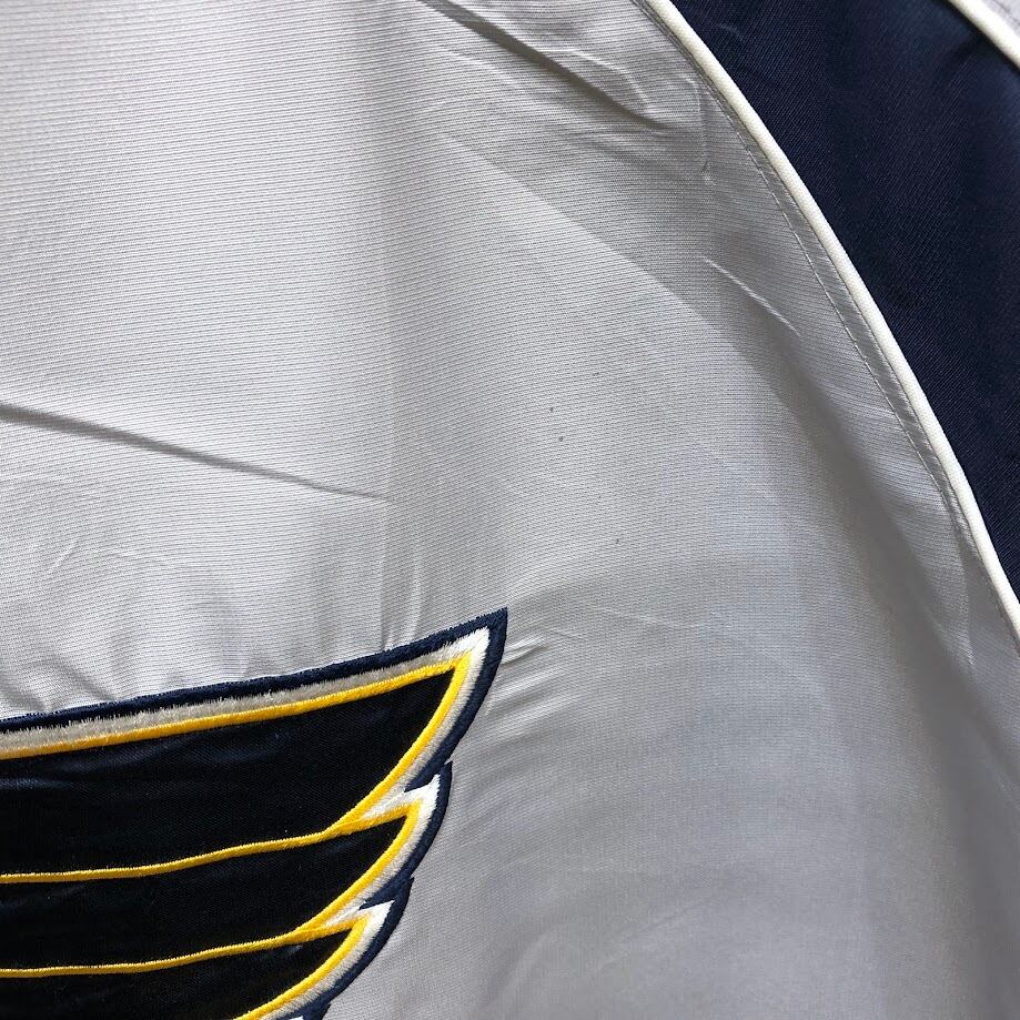 NHL.ST.LOUIS BLUES セントルイス・ブルース ナイロンジャケット ドローコード フロント刺繡 バック刺繡 オーバーサイズ ビッグシルエット CHINA製 XLサイズ シルバーグレー/ネイビー