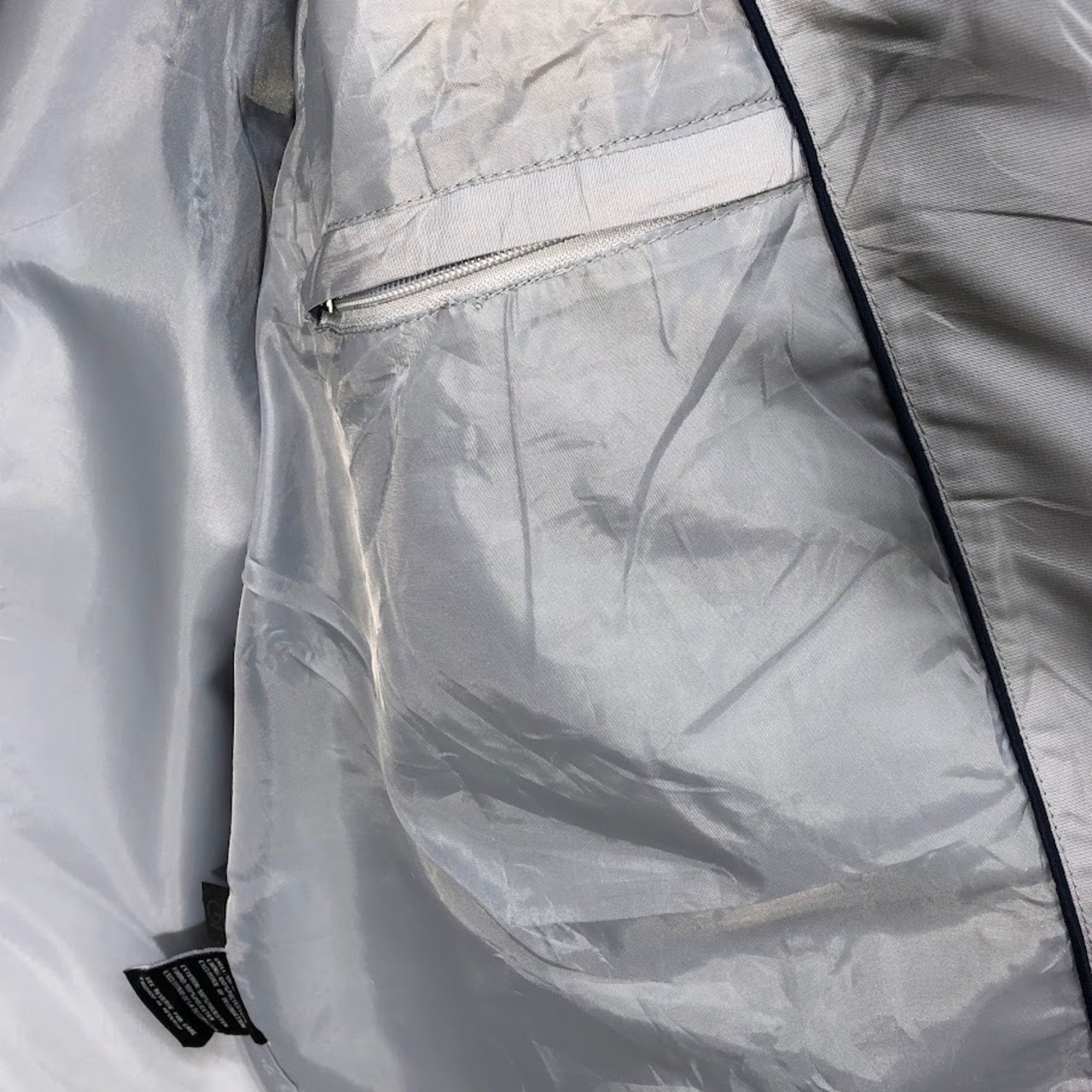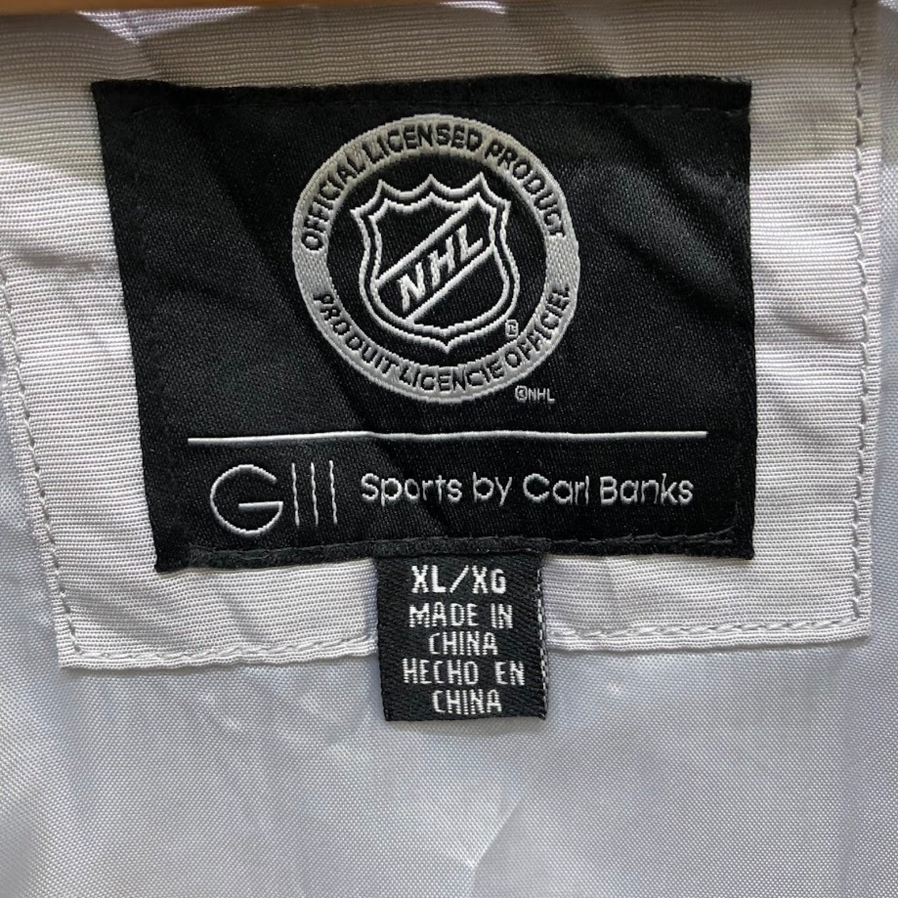 商品名:NHL.ST.LOUIS BLUES セントルイス・ブルース ナイロンジャケット ドローコード フロント刺繡 バック刺繡 オーバーサイズ ビッグシルエット CHINA製 XLサイズ シルバーグレー/ネイビー