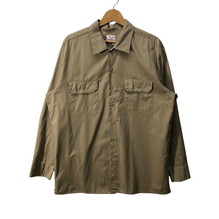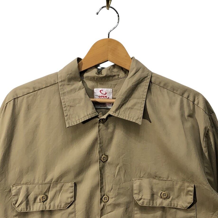 OPEN TRAILS 無地 ダブルポケット 長袖 シャツ オーバーサイズ ビッグシルエット インドネシア製 Lサイズ ブラウン