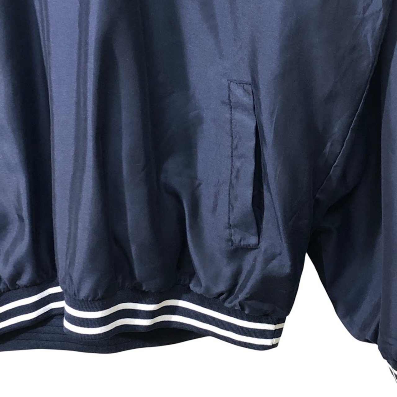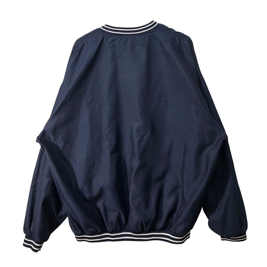 商品名:90's vintage 90年代 ヴィンテージ Reebok リーボック ナイロンプルオーバーシャツ バスケチーム刺繍 フロント刺繍 Vネック Korea製 XXLサイズ ネイビー