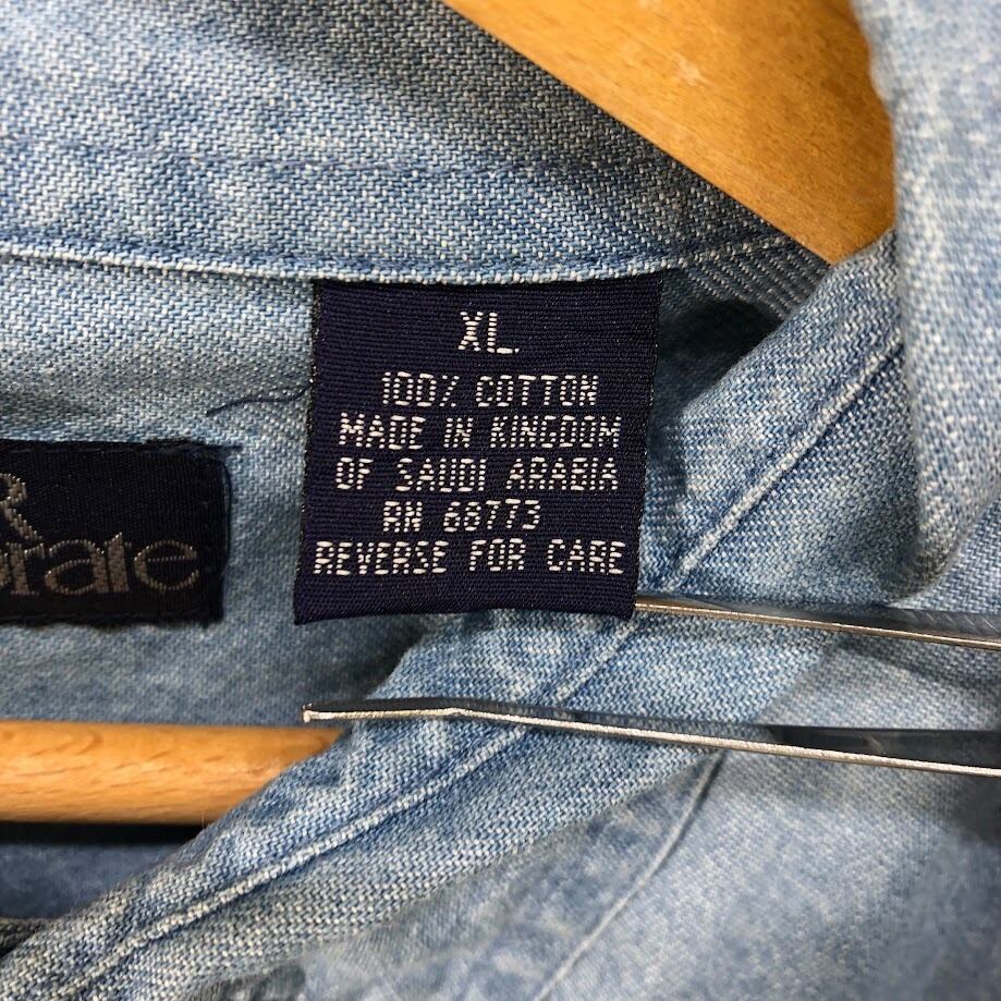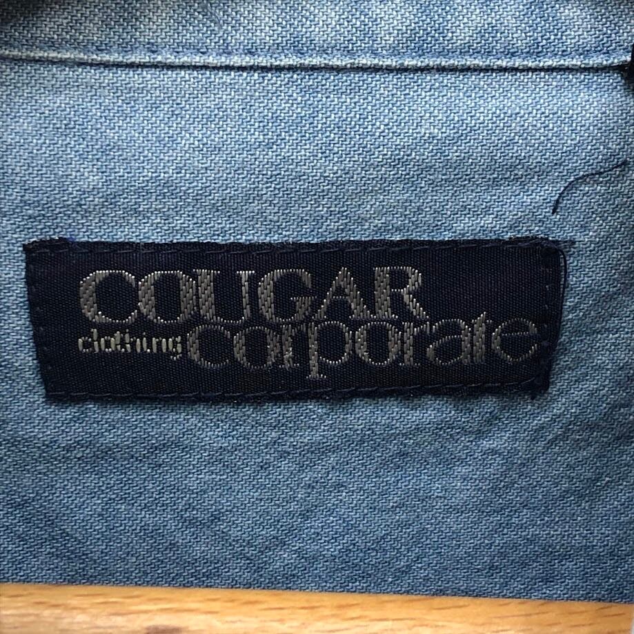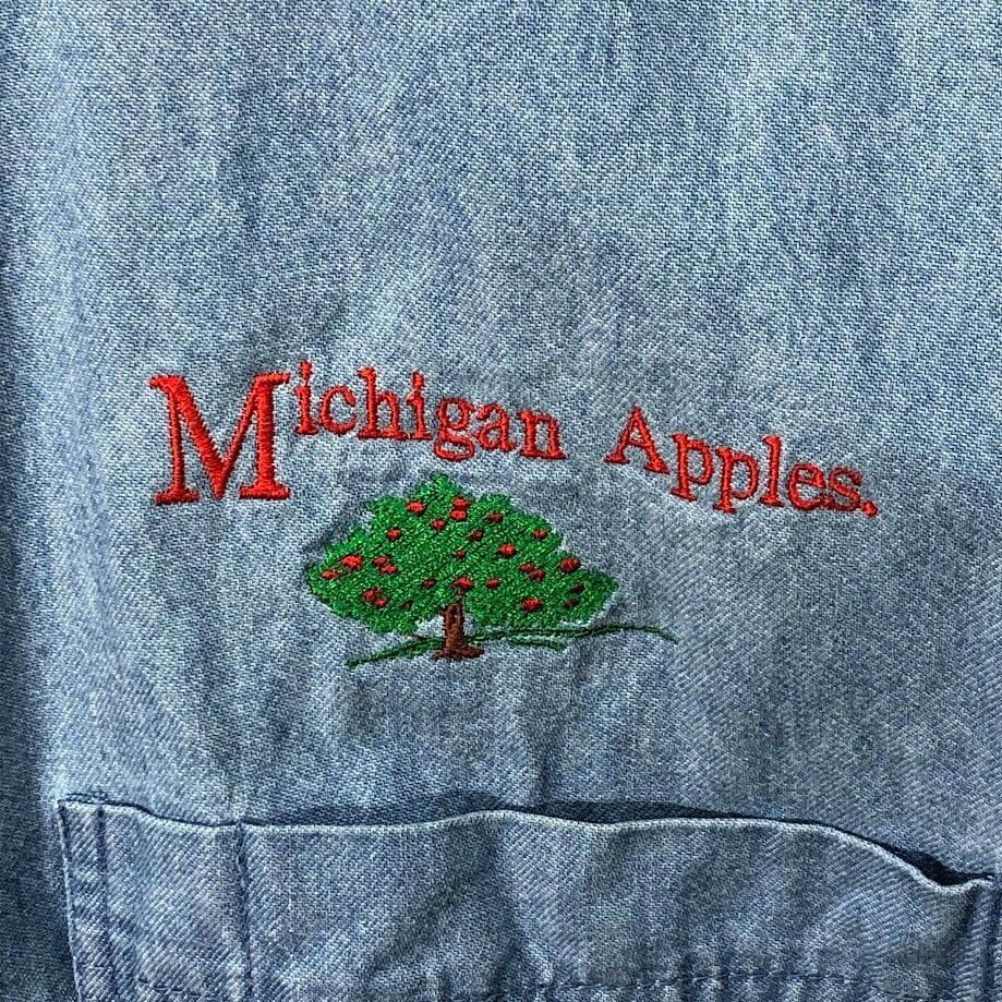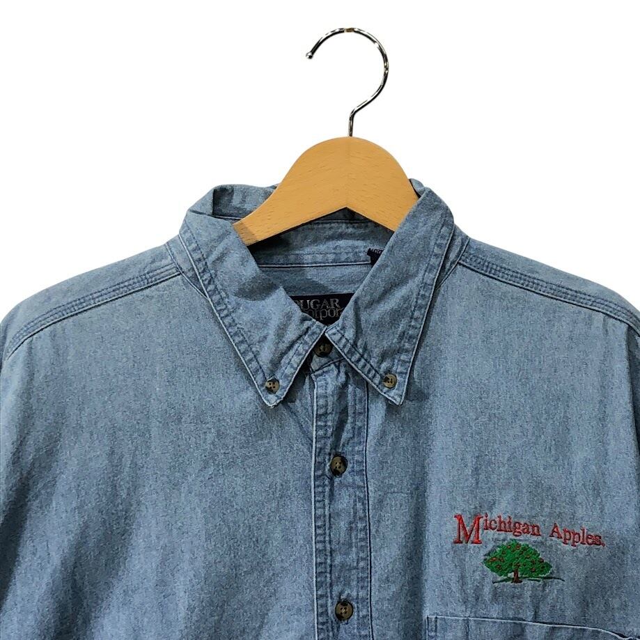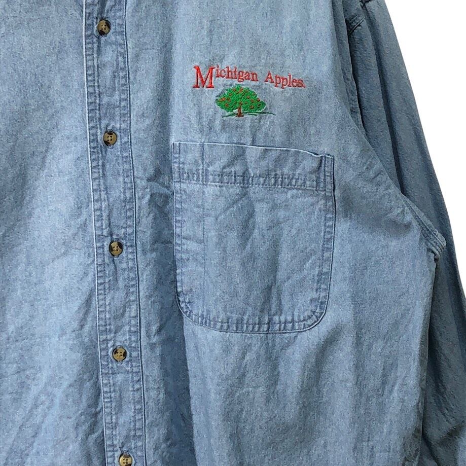 COUGAR clothing Corporate デニムシャツ Michigan Apples 長袖 シャツ ボタンダウン 企業ロゴ刺繍 オーバーサイズ ビッグシルエット KIGDAM製 XLサイズ ブルー