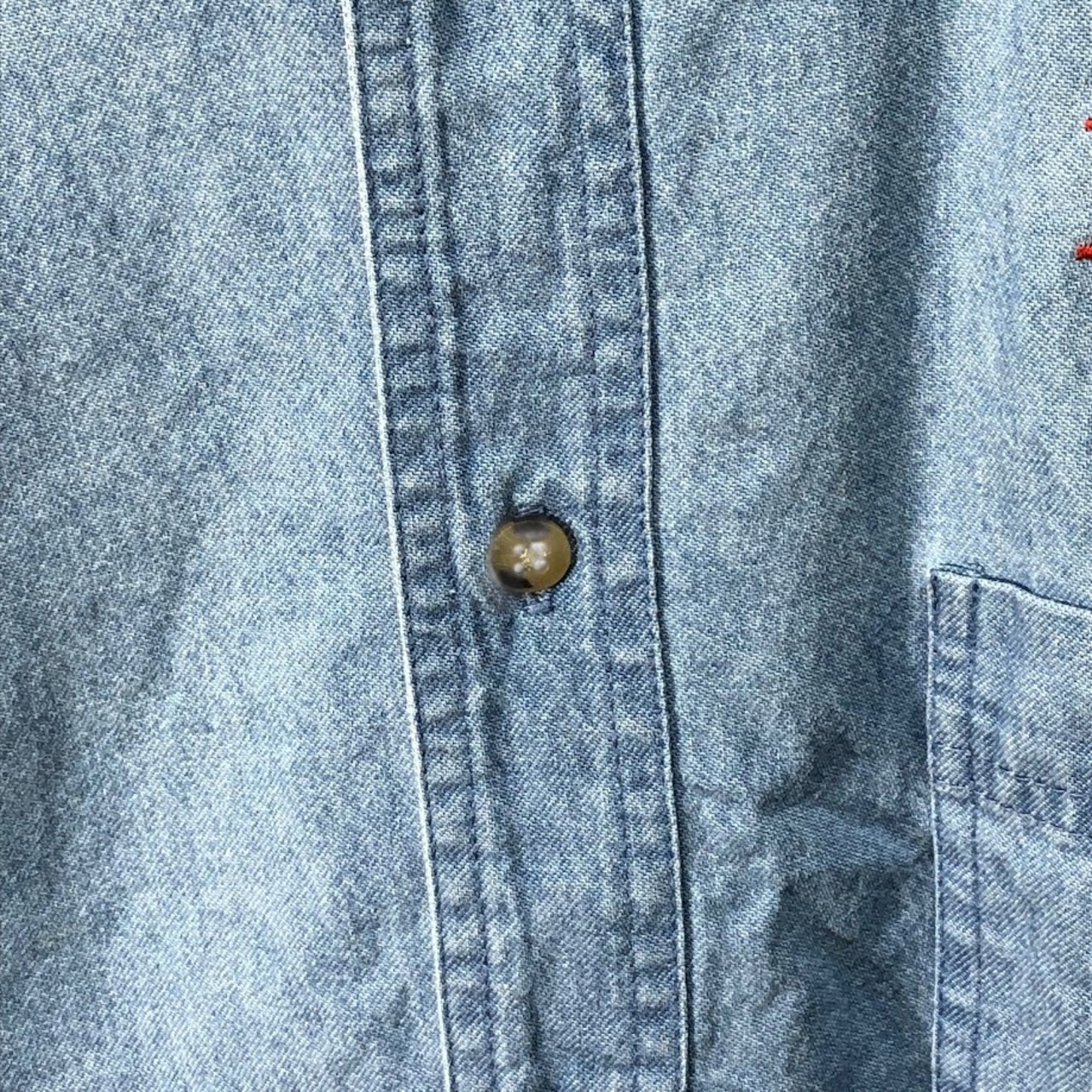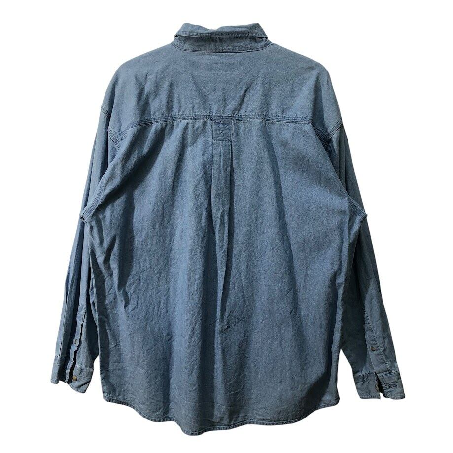 商品名:COUGAR clothing Corporate デニムシャツ Michigan Apples 長袖 シャツ ボタンダウン 企業ロゴ刺繍 オーバーサイズ ビッグシルエット KIGDAM製 XLサイズ ブルー