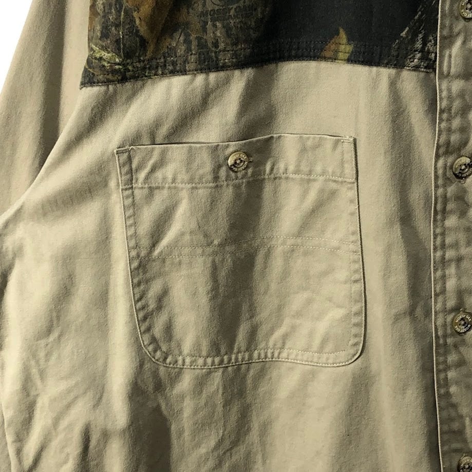 MOSSY OAK アウトドアシャツ リアルツリー カモ柄 長袖 シャツ ボタンダウン インドネシア製 XLサイズ カーキ