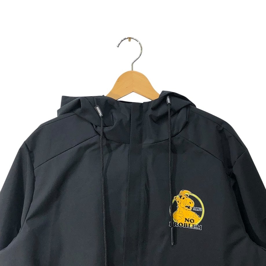 商品名:ALF ジャケット 海外ドラマ アルフ メルマック ゴードン 所ジョージ フード ジャケット フロントバックプリント CHINA製 Lサイズ ブラック