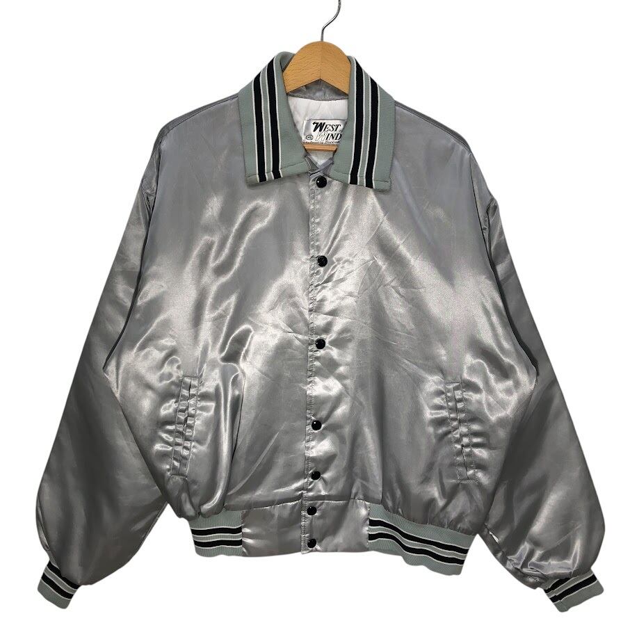 商品名:80's vintage 80年代 ヴィンテージ WEST WIND スタジャン ナイロンジャケット ブルゾン XLサイズ シルバー グレー