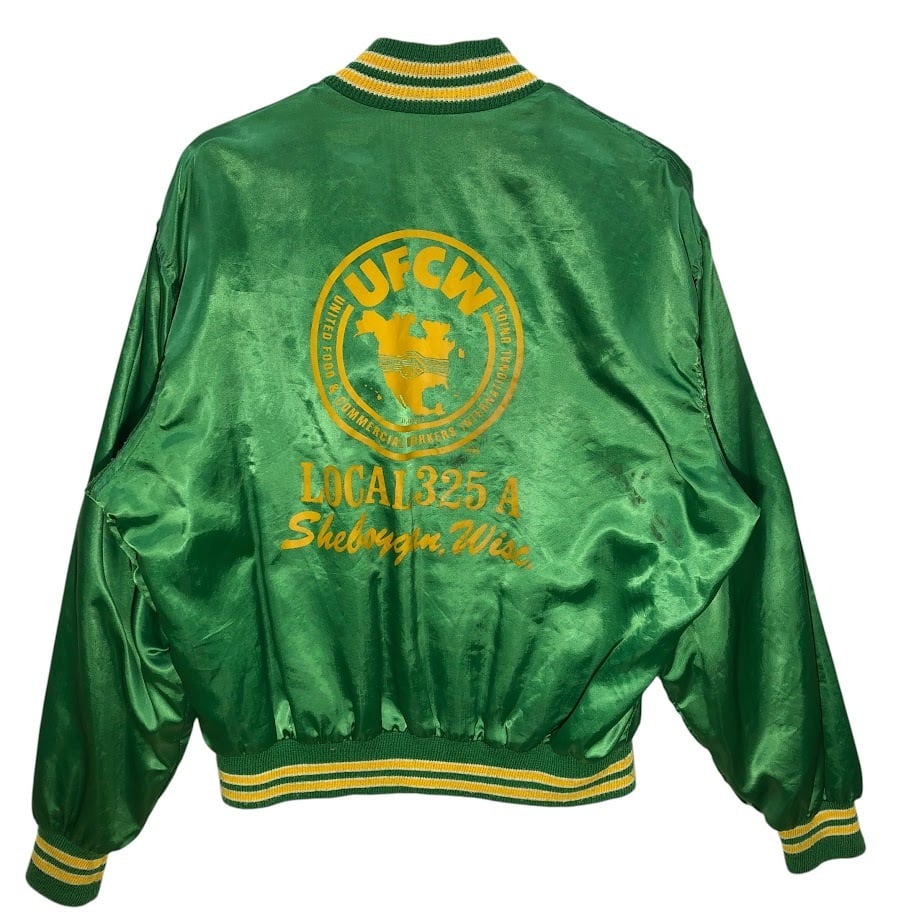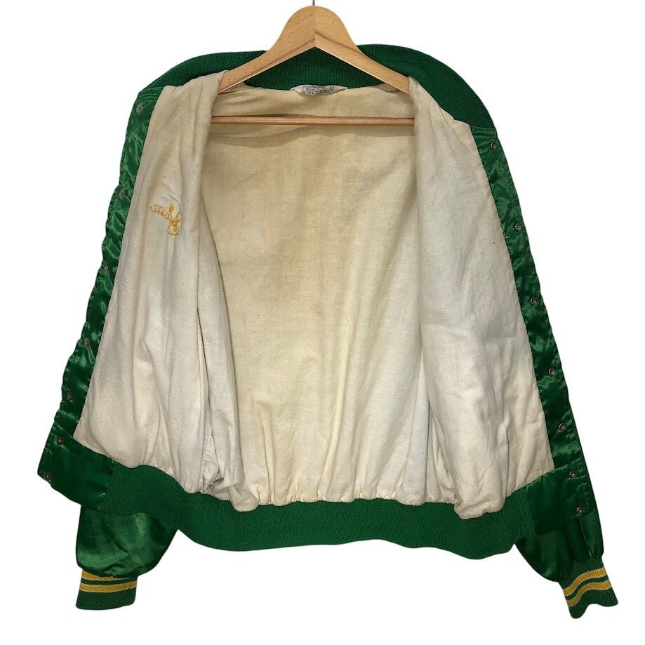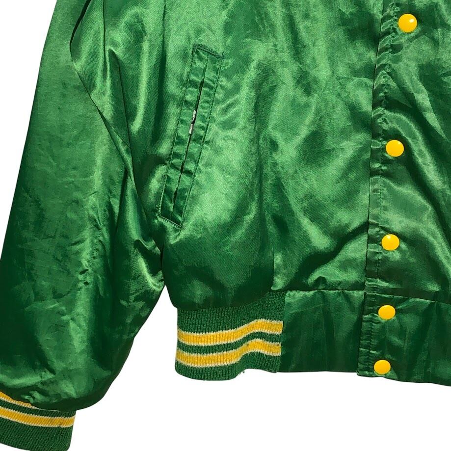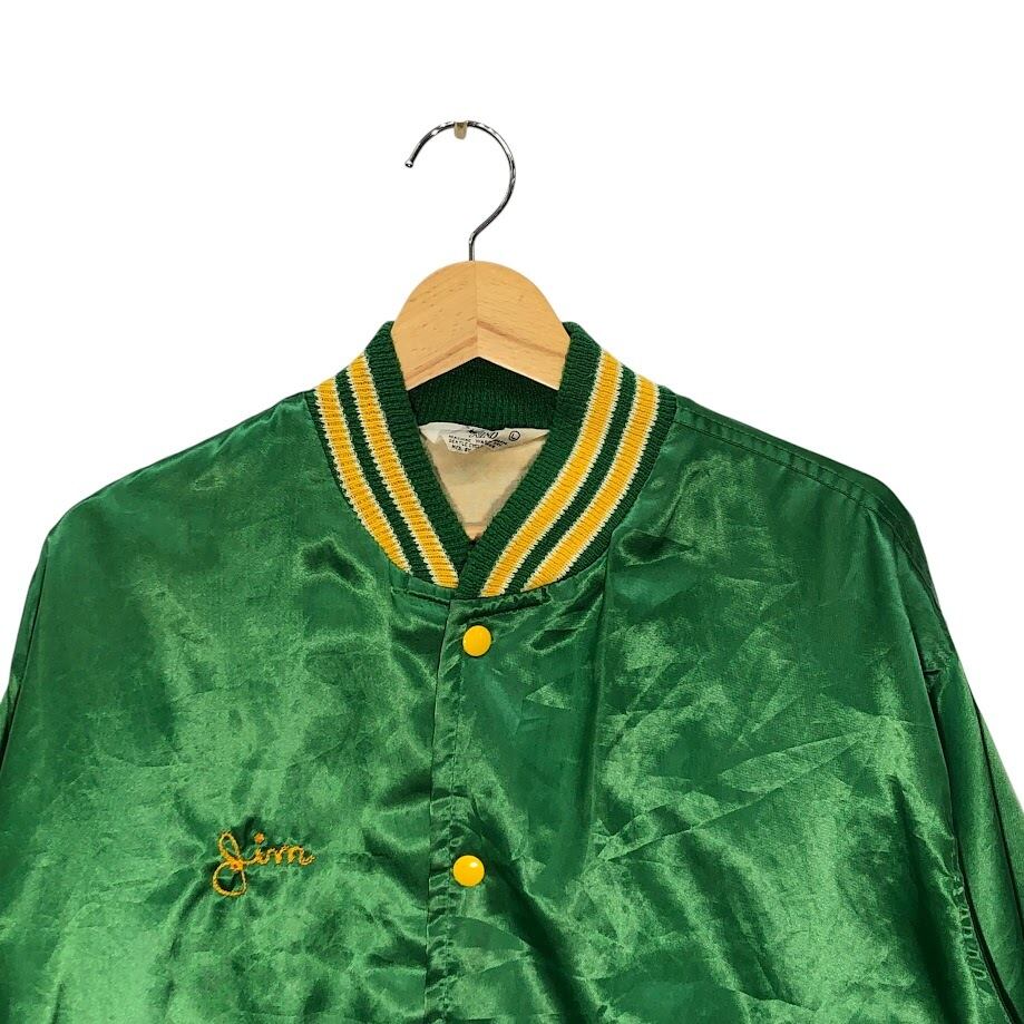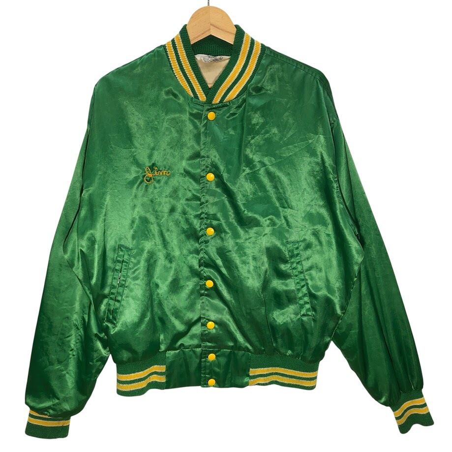 商品名:60~70's vintage 60~70年代 ヴィンテージ WEST WIND スタジャン ナイロンジャケット ブルゾン バックプリント ワンポイント刺繡 USA製 Lサイズ グリーン イエロー