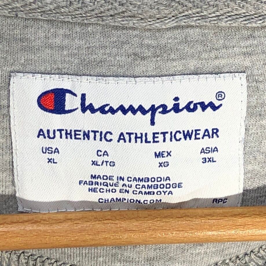 Champion チャンピオン パーカー フーディー プルオーバー 長袖 袖刺繡 ワンポイント刺繡 オーバーサイズ ビッグシルエット カンボジア製 XLサイズ ネイビー グレー