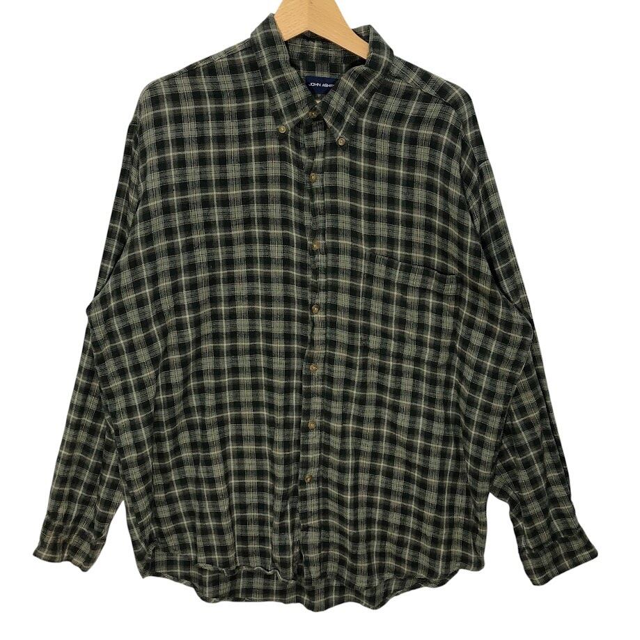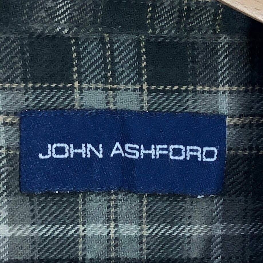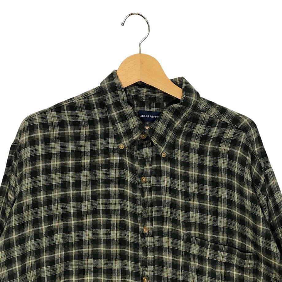 JOHN ASHFORD ジョンアシュフォード ネルシャツ チェック柄 長袖シャツ ボタンダウン Bangladesh製 XLサイズ グリーン