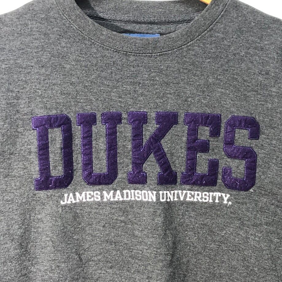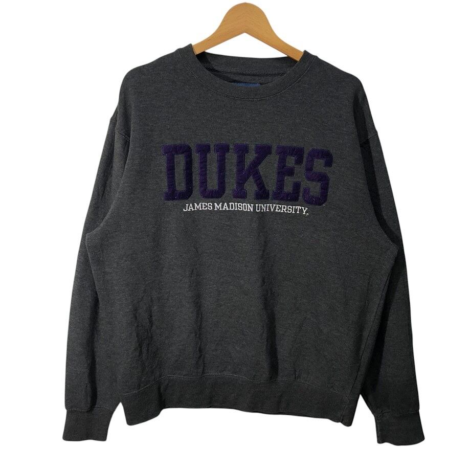 Blue84 ブルー84 DUKES ジェームズ マディソン大学 カレッジ刺繍 スウェット トレーナー 長袖 フロント刺繍 Pakistan製 Mサイズ ダークグレー
