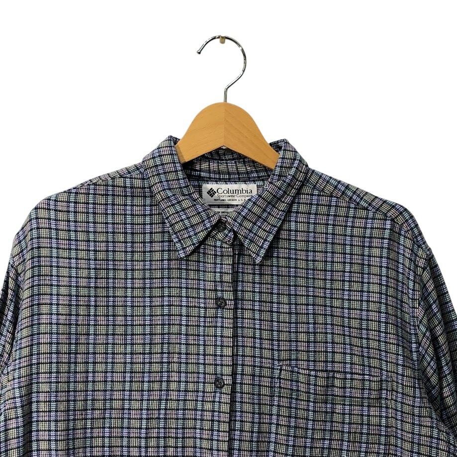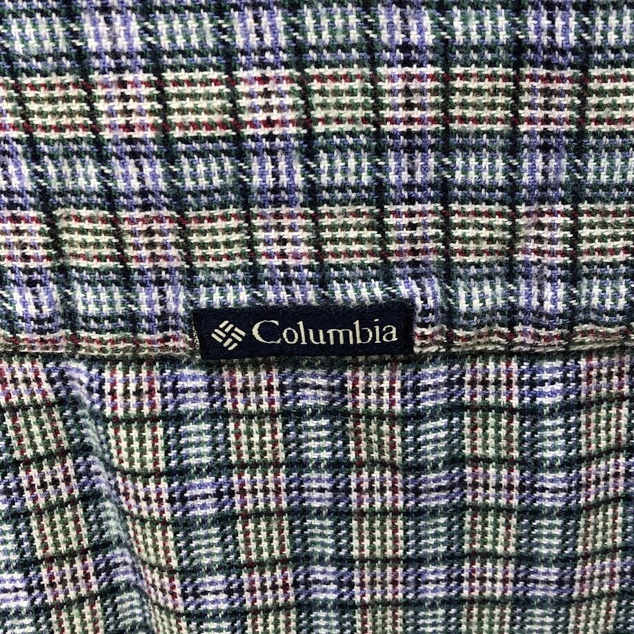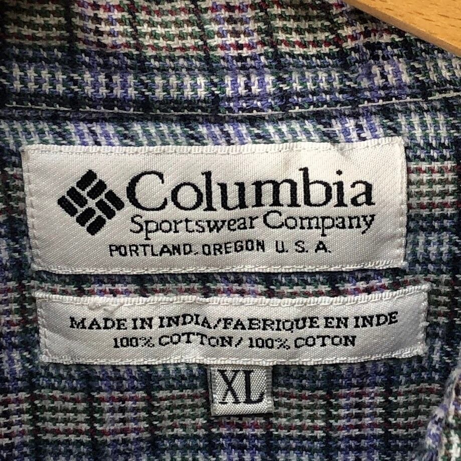 00's vintage 00年代 ヴィンテージ Columbia コロンビア ネルシャツ チェック柄 長袖 シャツ ワンポイントバック刺繍 INDIA製 XLサイズ ブルー グリーン レッド ホワイト