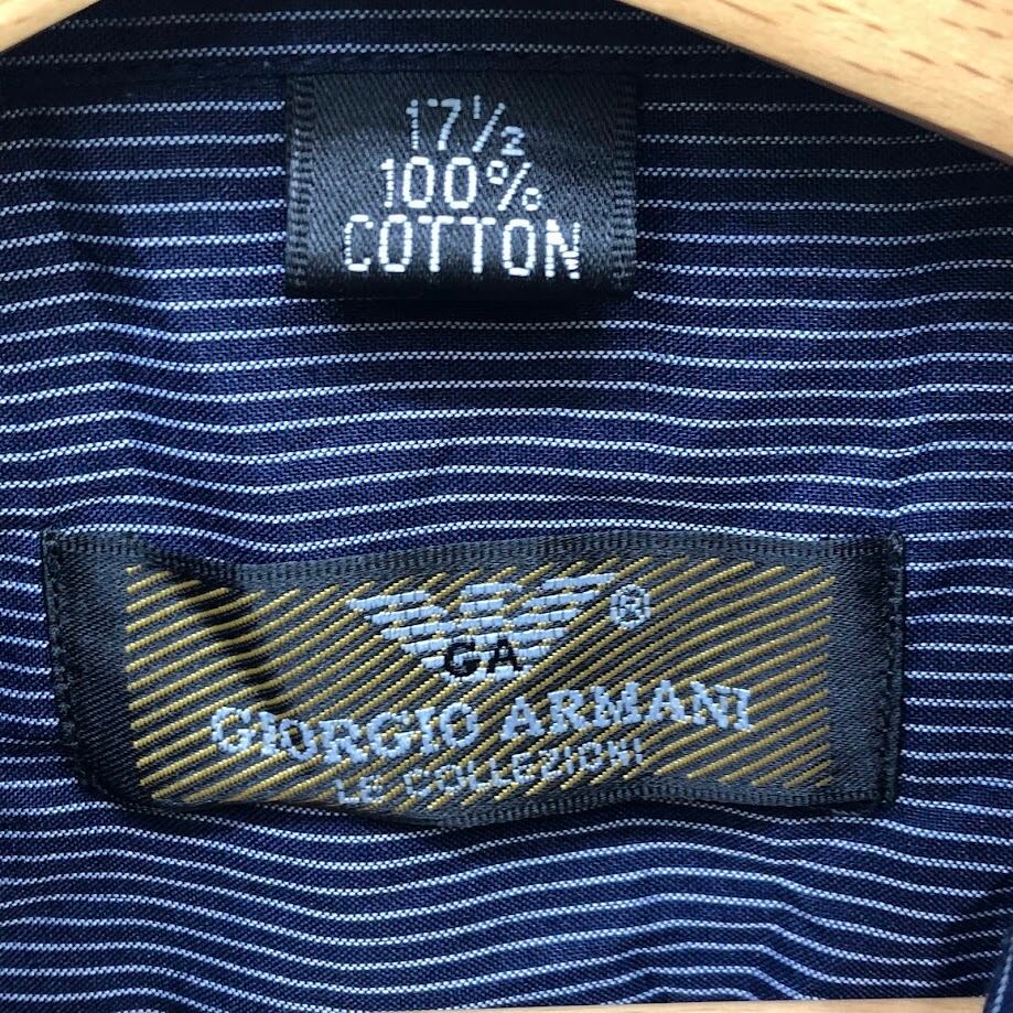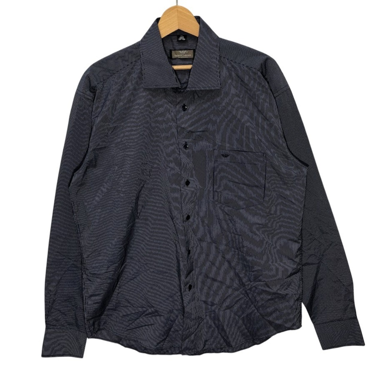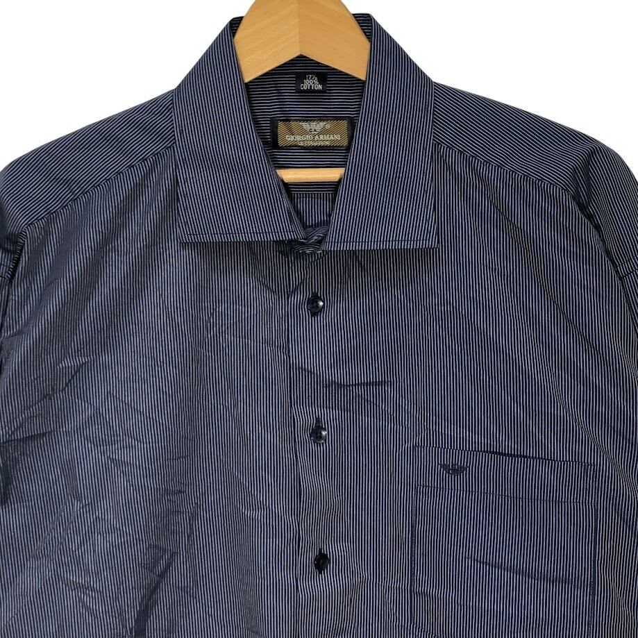 GIORGIO ARMANI/ジョルジオ アルマーニ ストライプシャツ 長袖シャツ ボタンダウン ワンポイント刺繡 172/1サイズ ネイビー