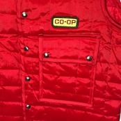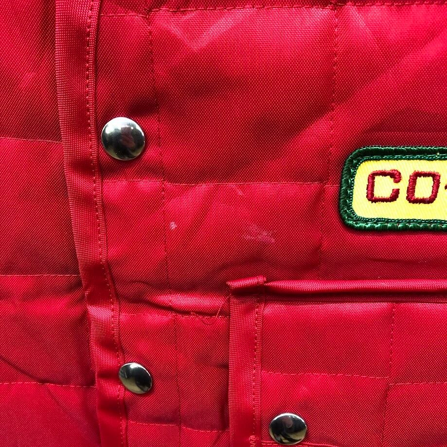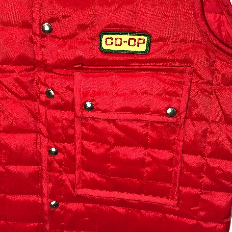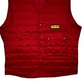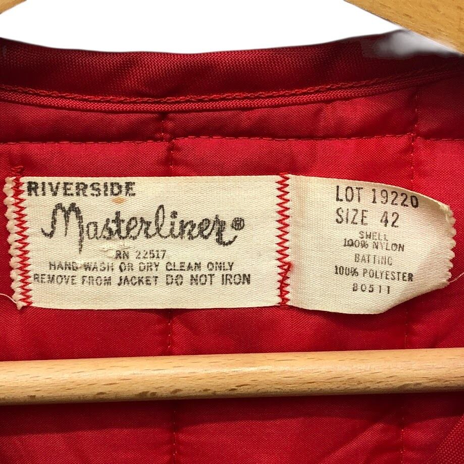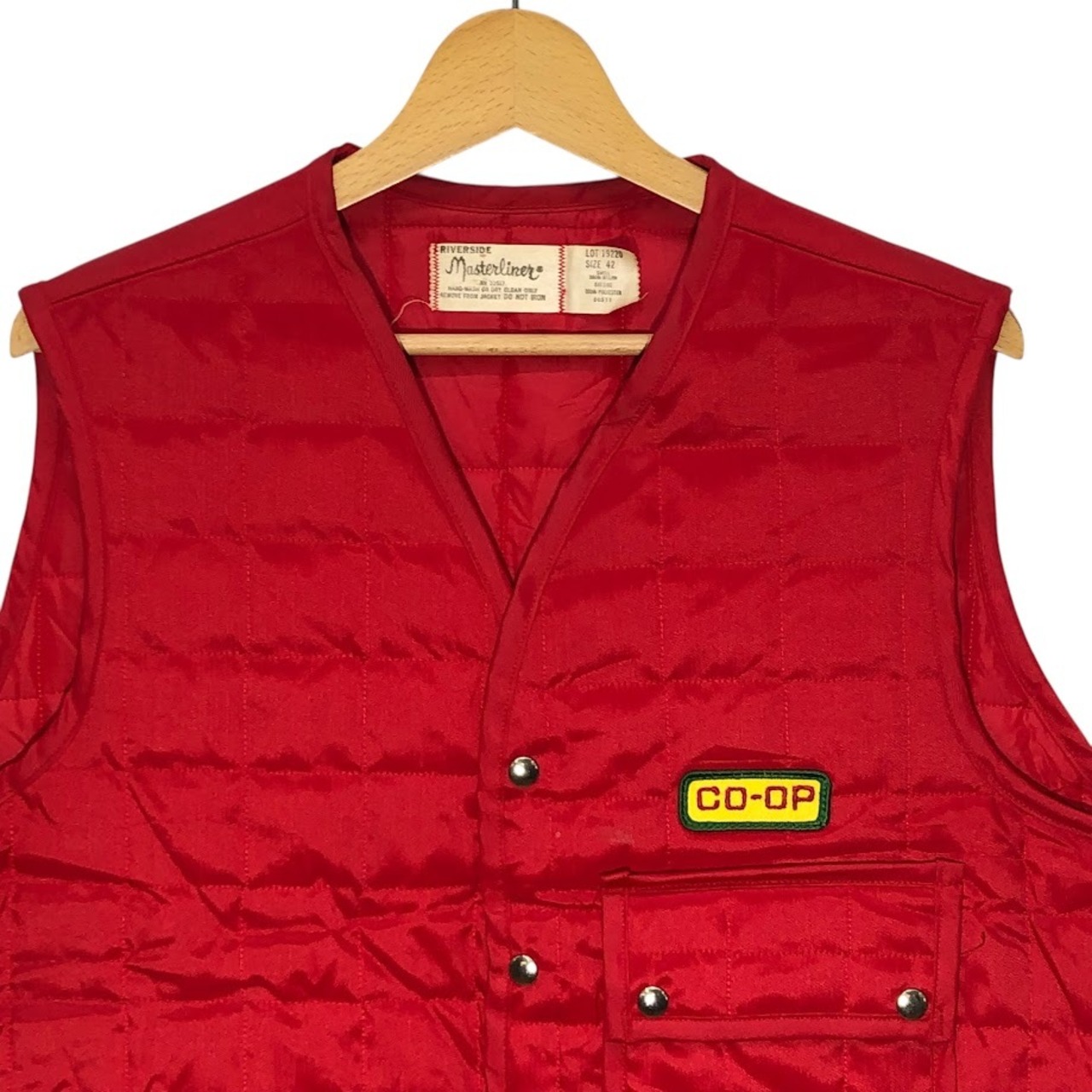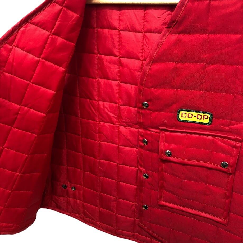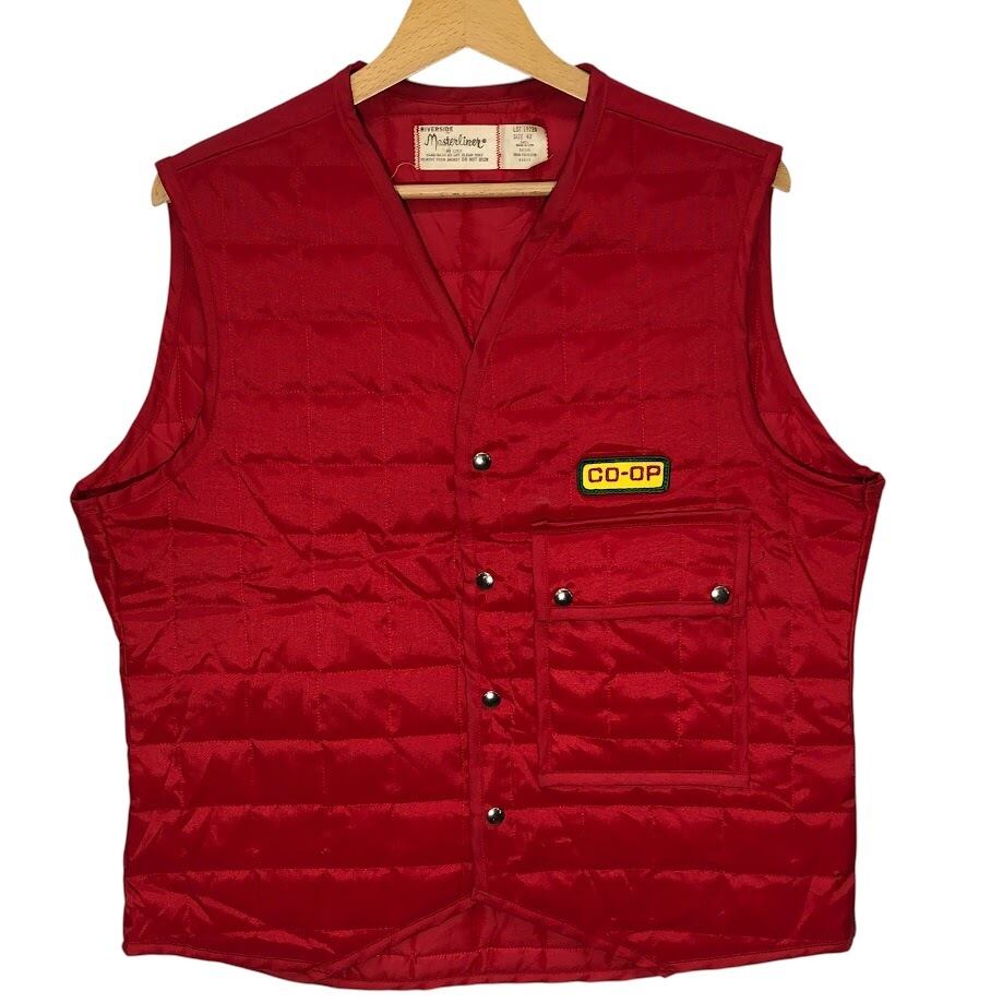 商品名:Riverside Masterliner coop ヴィンテージ キルティングベスト ワークウェア スナップボタン 企業ロゴ刺繡 オーバーサイズ ビッグシルエット 42サイズ レッド