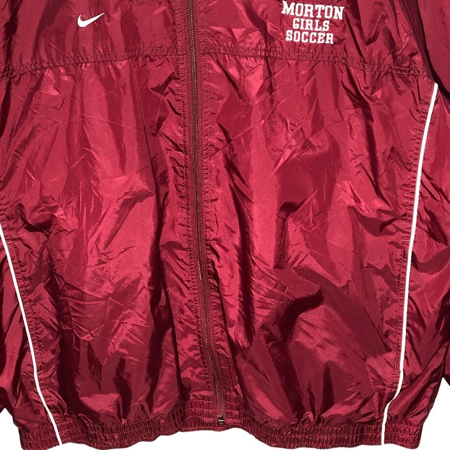 NIKE/ナイキ サッカーチーム MORTON GIRLS SOCCER ナイロンジャケット フロント刺繍 オーバーサイズ ビッグシルエット Taiwan製 XLサイズ ボルドー