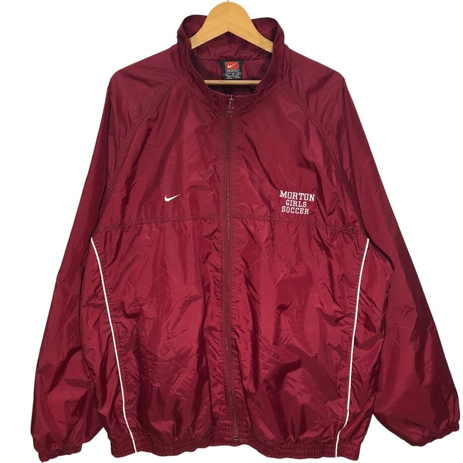 商品名:NIKE/ナイキ サッカーチーム MORTON GIRLS SOCCER ナイロンジャケット フロント刺繍 オーバーサイズ ビッグシルエット Taiwan製 XLサイズ ボルドー