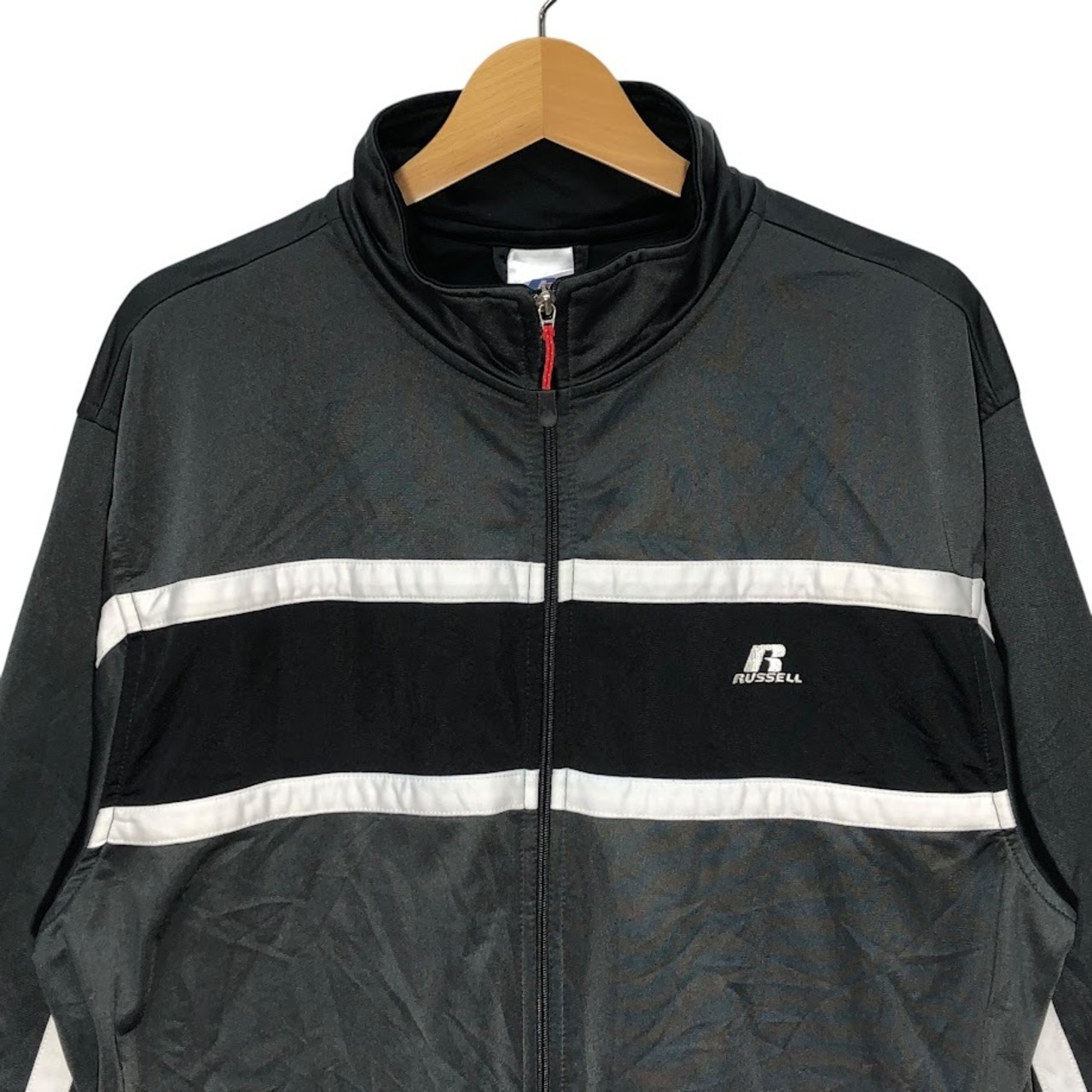 商品名:RUSSELL ATHLETIC ラッセルアスレティック フルジップ ライトアウター 長袖 ワンポイント刺繡 トラックジャケット ジャージ INDNESIA製 Lサイズ グレー