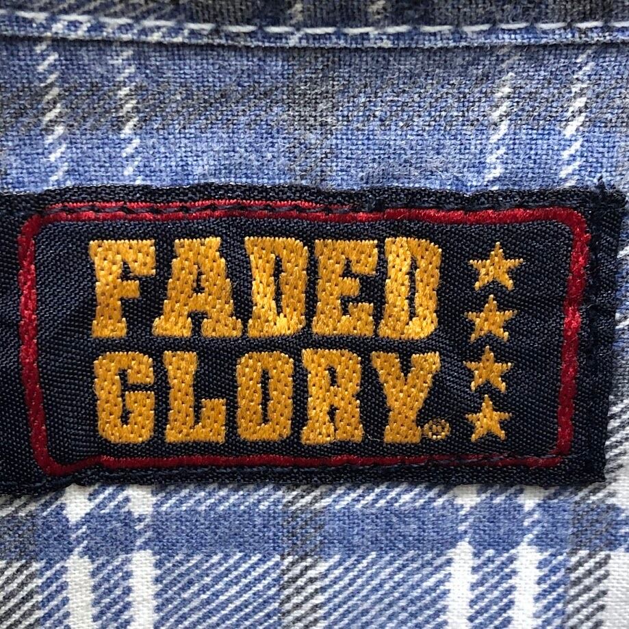 FADEO GRORY/フェイデッドグローリー 90年代/90's ヴィンテージ チェックフランネルシャツ アメカジ 長袖シャツ ボタンダウン QATER製 Lサイズ ブルー