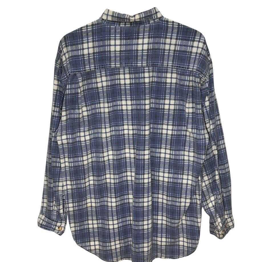 商品名:FADEO GRORY/フェイデッドグローリー 90年代/90's ヴィンテージ チェックフランネルシャツ アメカジ 長袖シャツ ボタンダウン QATER製 Lサイズ ブルー