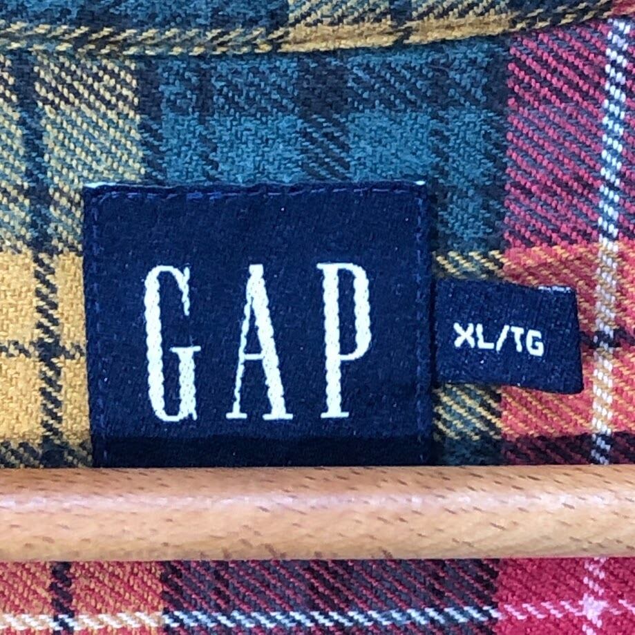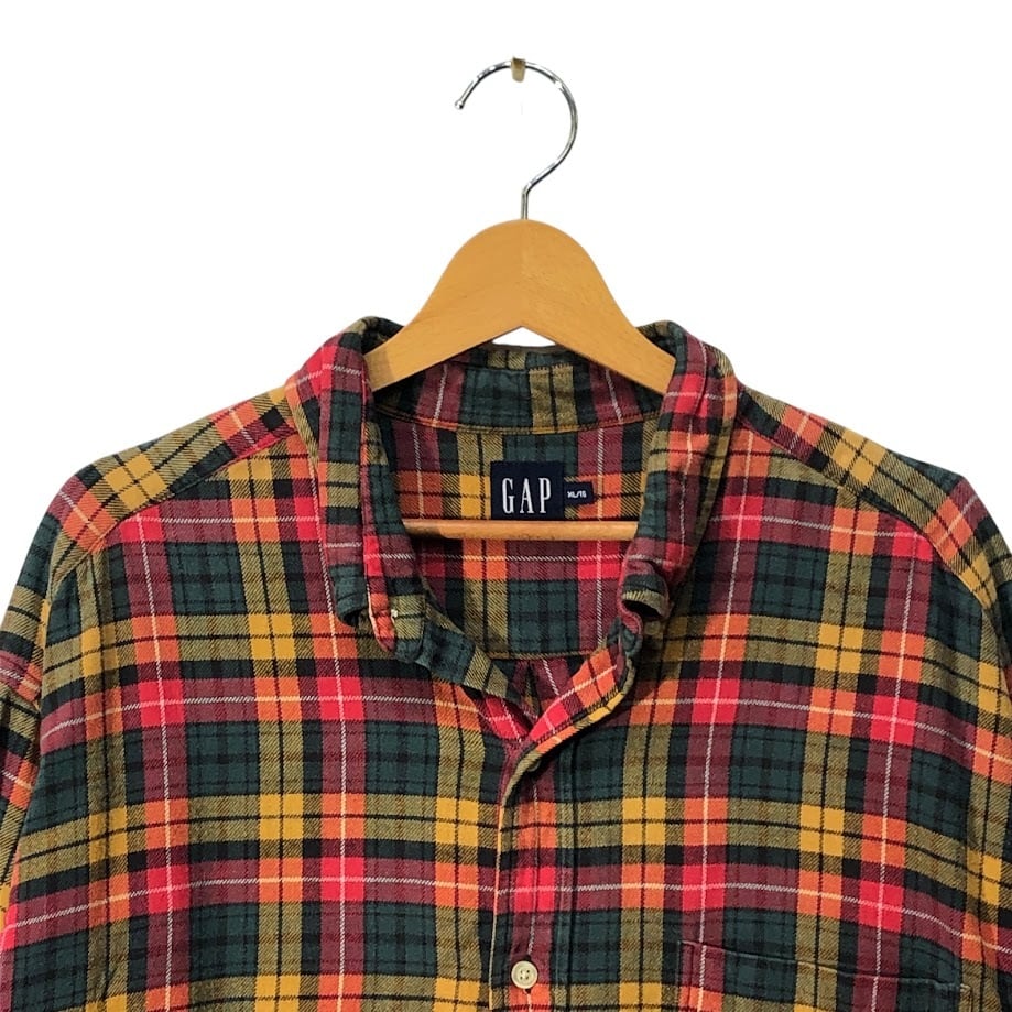 90's vintage 90年代 ヴィンテージ GAP オールドギャップ チェックネルシャツ 長袖 シャツ ボタンダウン オーバーサイズ INDIA製 XLサイズ レッド イエロー グリーン