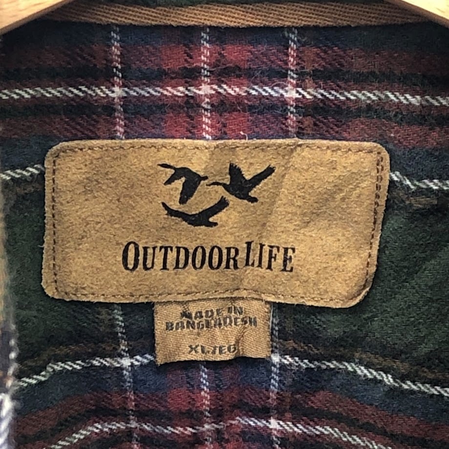 OUTDOOR LIFE チェックネルシャツ 長袖 シャツ ボタンダウン Bangladesh製 XLサイズ グリーン レッド ブルー