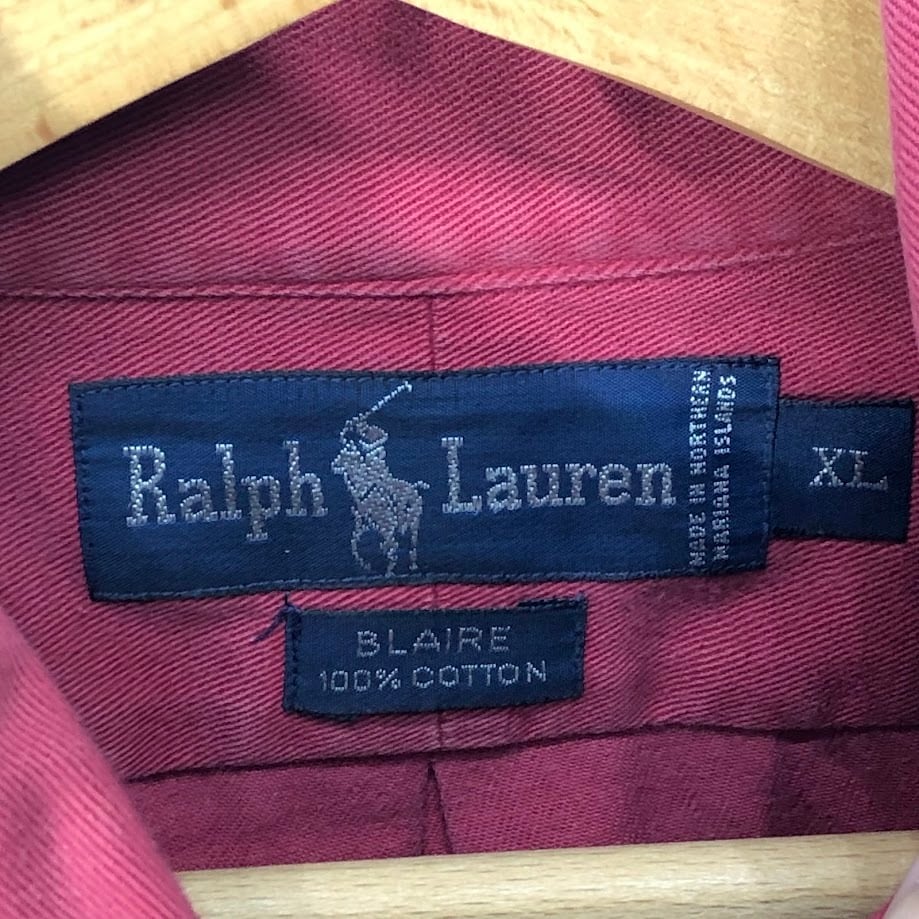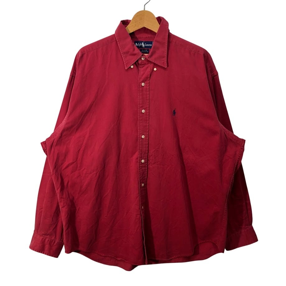 Ralph Lauren ラルフローレン BLAIBE 長袖 シャツ ボタンダウン ポニー刺繍 オーバーサイズ NORTHERN MARIANA IS LANDS製 XLサイズ レッド