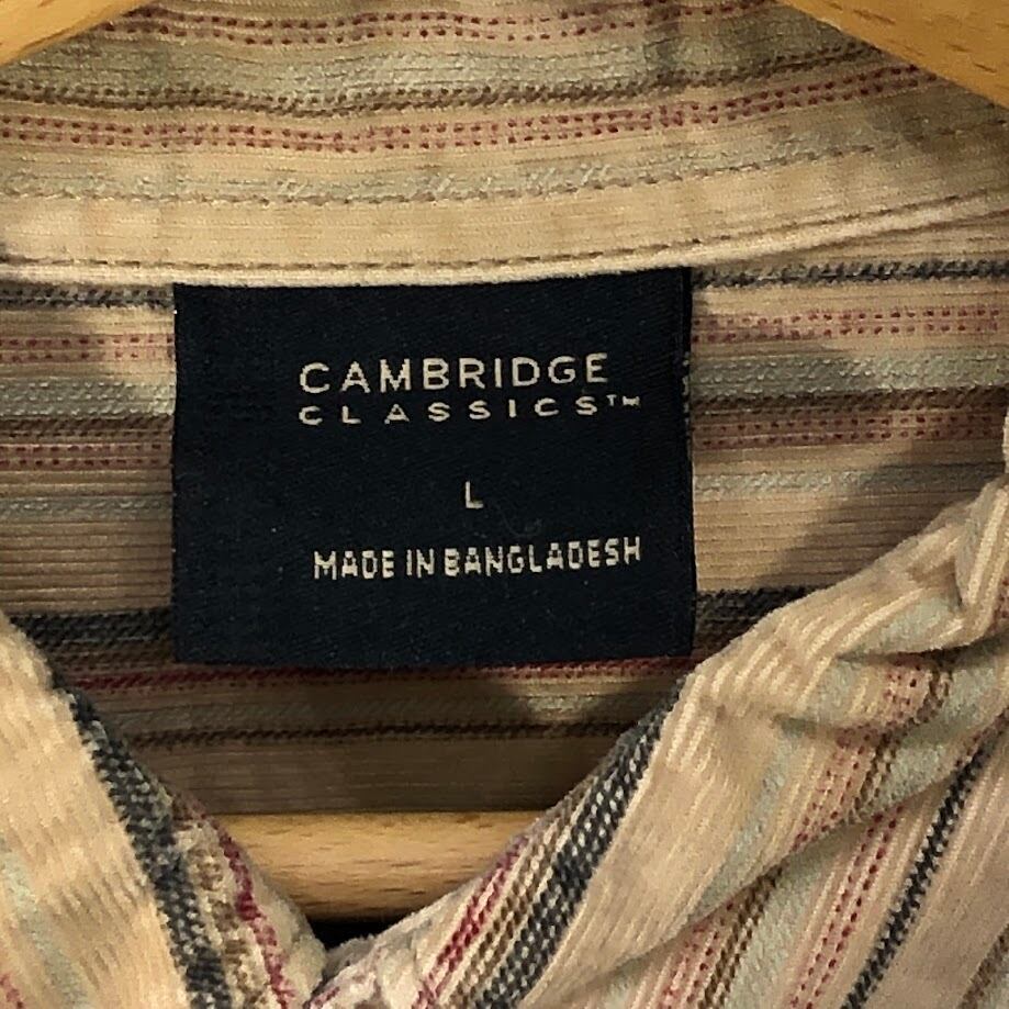 CAMBRIDGE CLASSICS コーデュロイシャツ ストライプ 長袖 シャツ ボタンダウン Bangladesh製 Lサイズ ベージュ