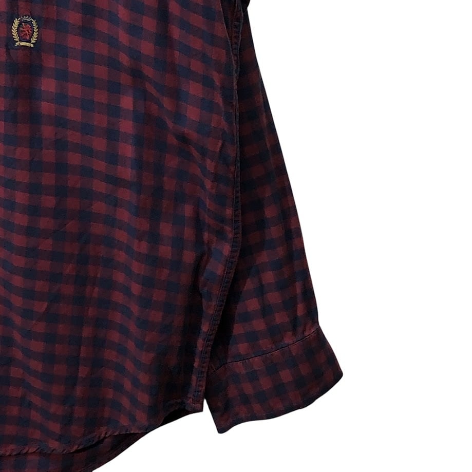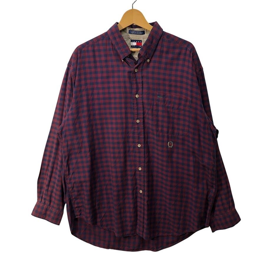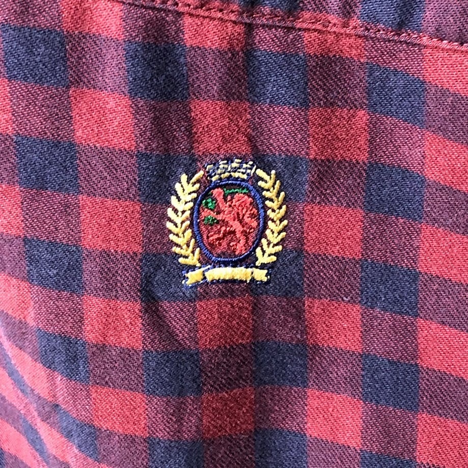 商品名:90's vintage 90年代 ヴィンテージ TOMMY HILFIGER トミーヒルフィガー オールドトミー フラッグタグ 長袖 シャツ ボタンダウン ワンポイント刺繡 MAURITIUS製 Lサイズ レッド ネイビー