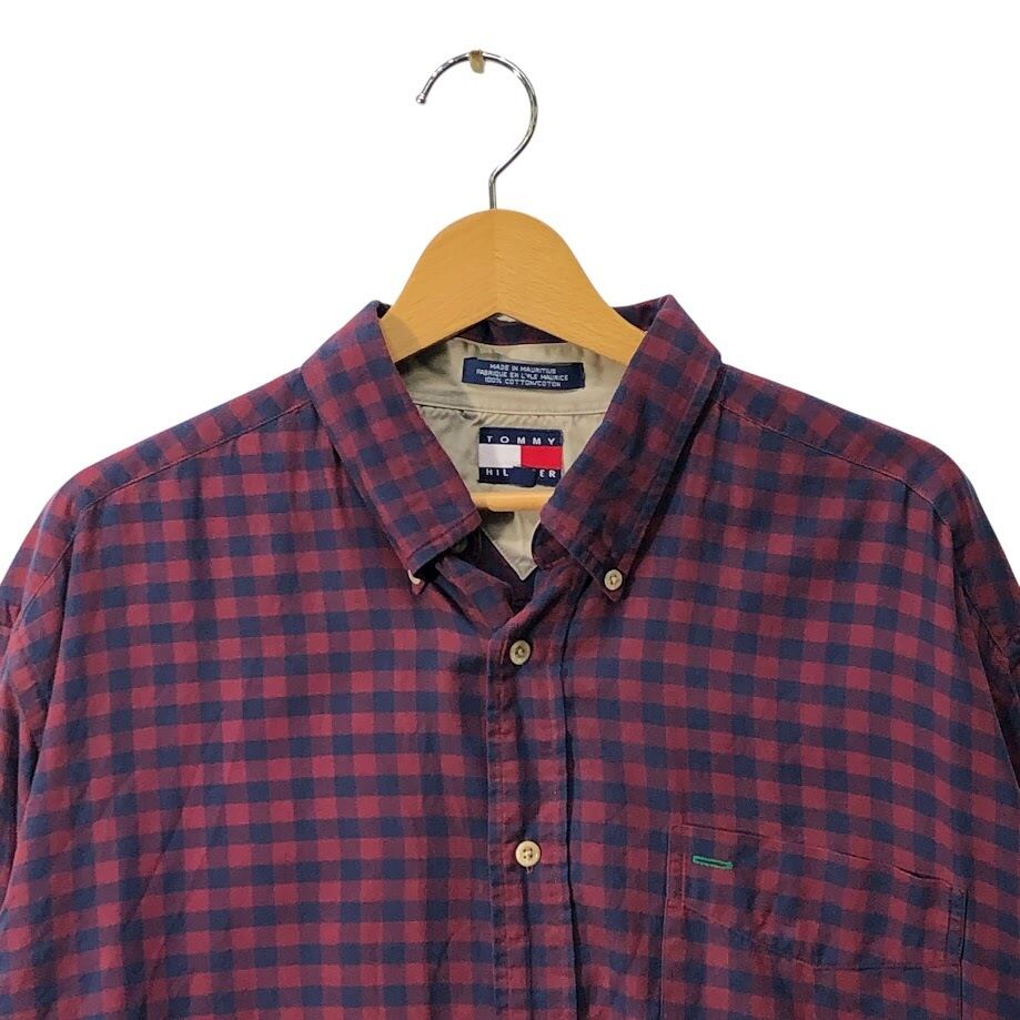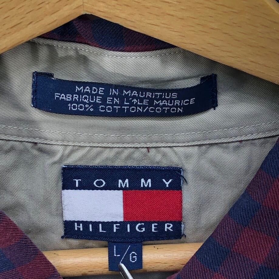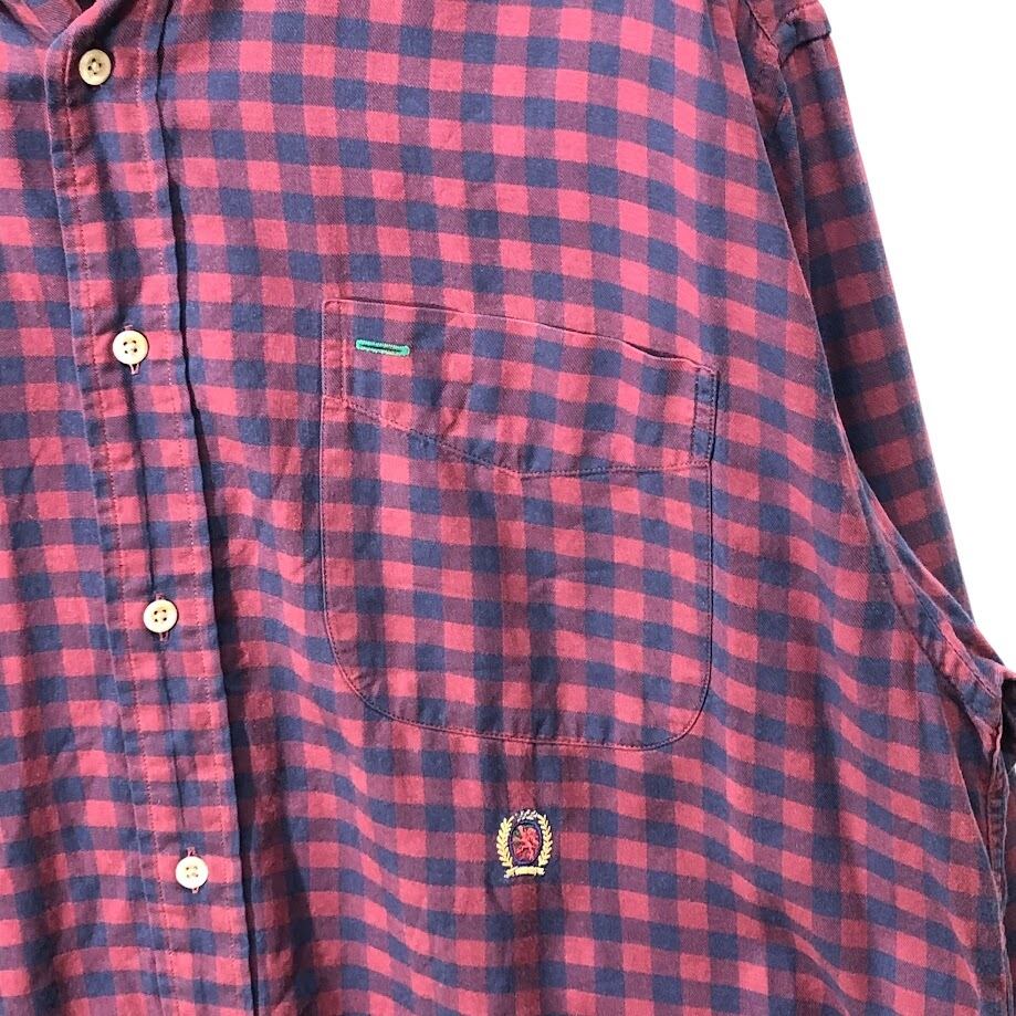 90's vintage 90年代 ヴィンテージ TOMMY HILFIGER トミーヒルフィガー オールドトミー フラッグタグ 長袖 シャツ ボタンダウン ワンポイント刺繡 MAURITIUS製 Lサイズ レッド ネイビー