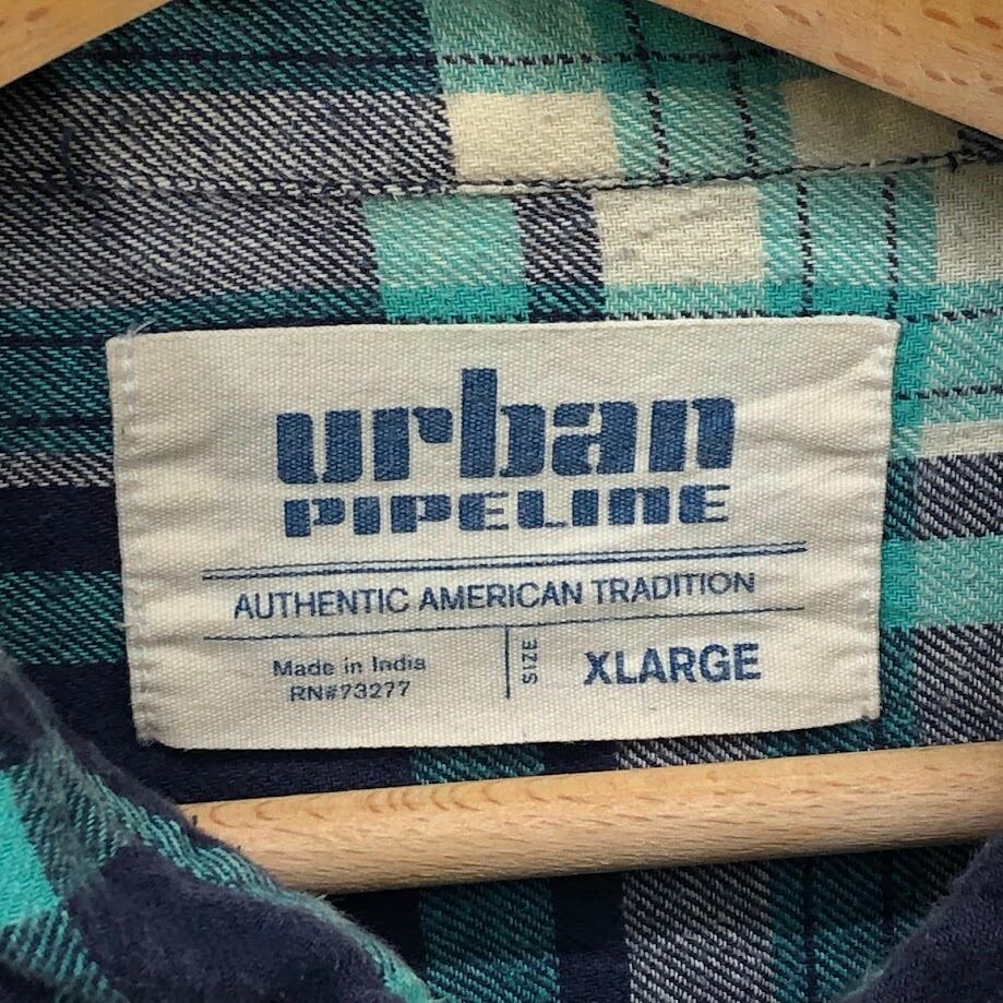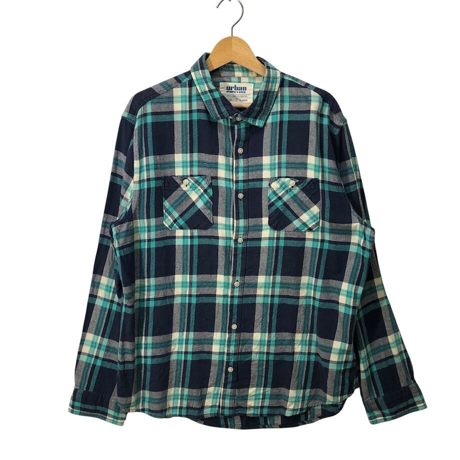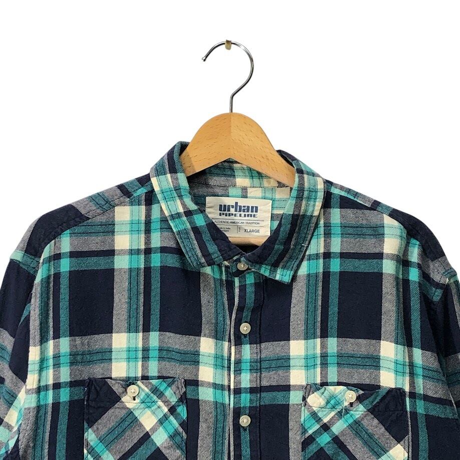 Urban PIPELINE チェック柄 ネルシャツ アーバンピープルライン 長袖 シャツ オーバーサイズ ビッグシルエット INDIA製 XLサイズ ネイビー ライトブルー アイボリー