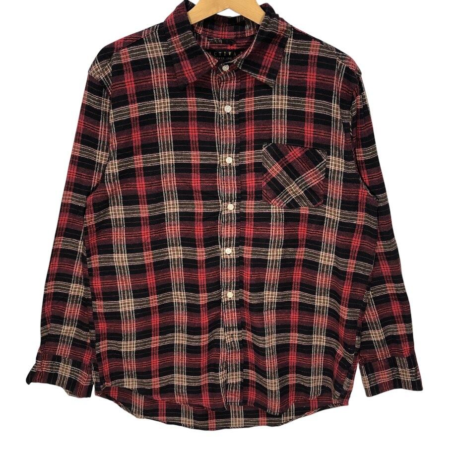ACTIVA チェック柄 フランネルシャツ ネルシャツ 長袖シャツ オーバーサイズ ビッグシルエット Lサイズ レッド ブラック