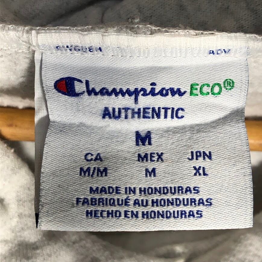 商品名:Champion チャンピオン パーカー フーディー プルオーバー フロントプリント Honduras製 Mサイズ ライトグレー