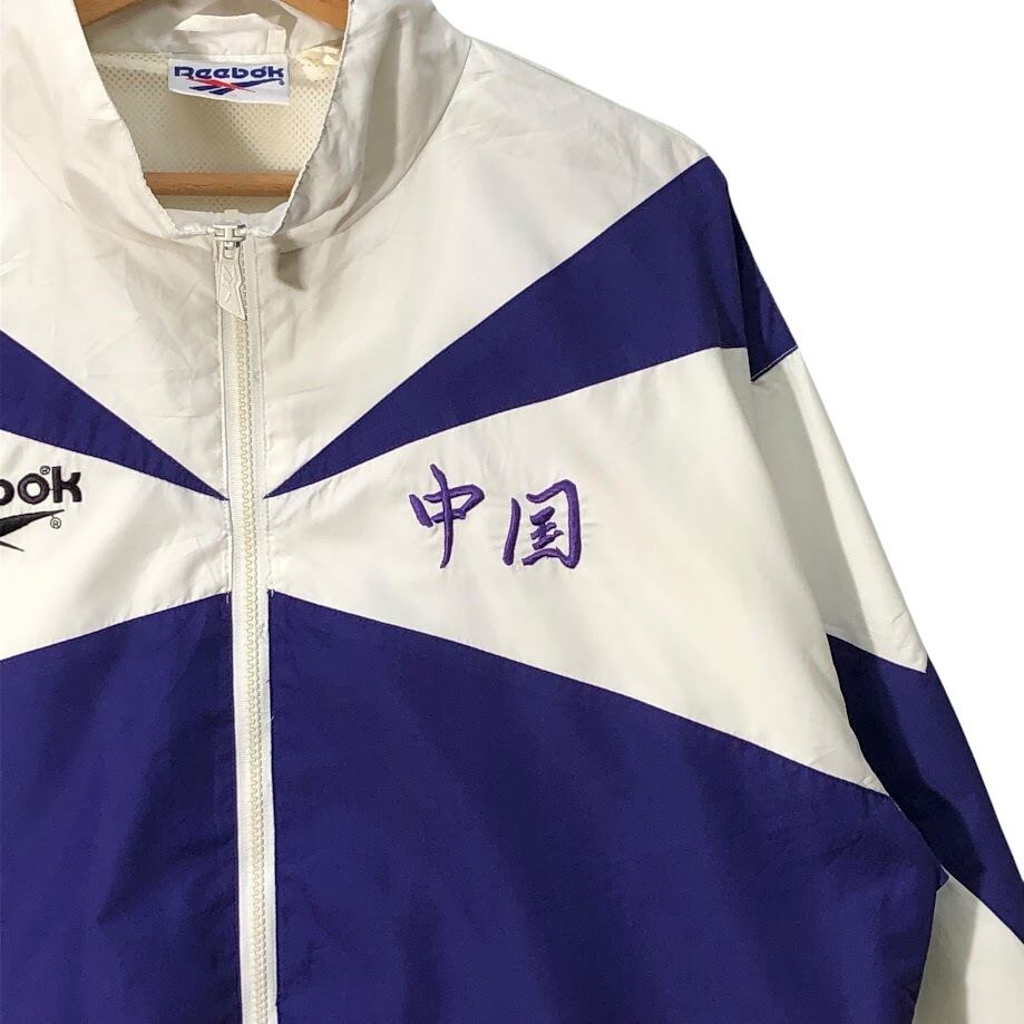 Reebok リーボック 中国刺繍 ナイロンジャケット CHINA製 Mサイズ ホワイト パープル