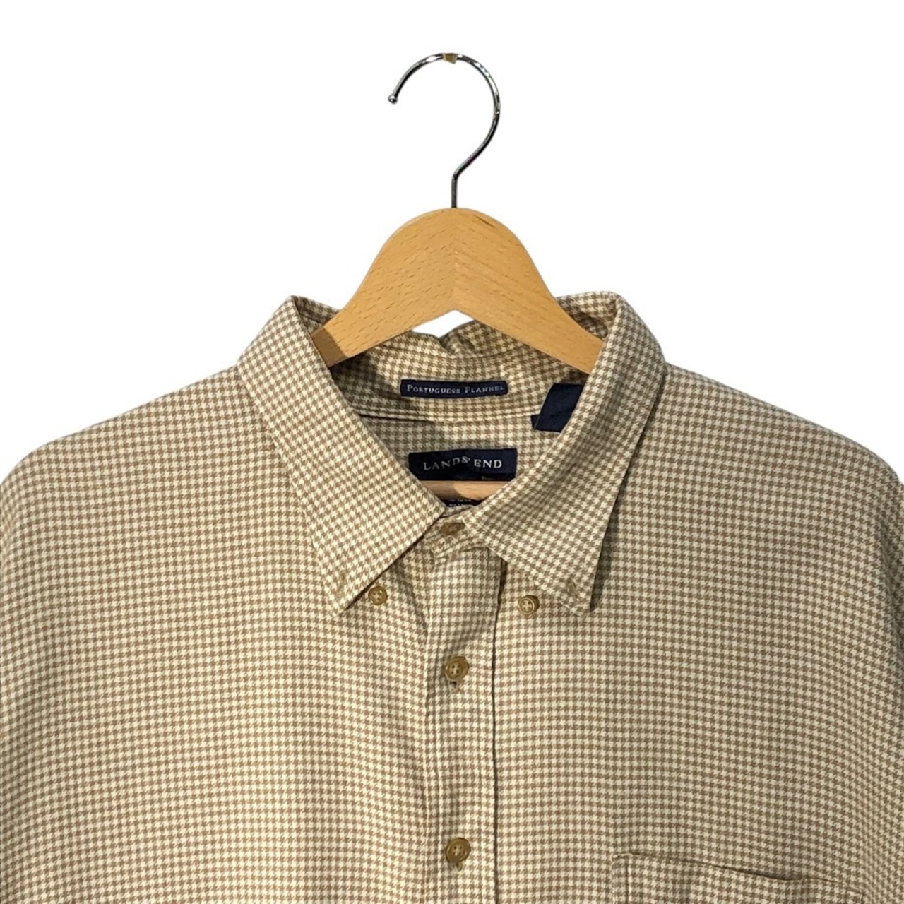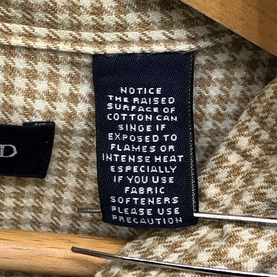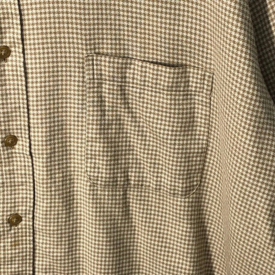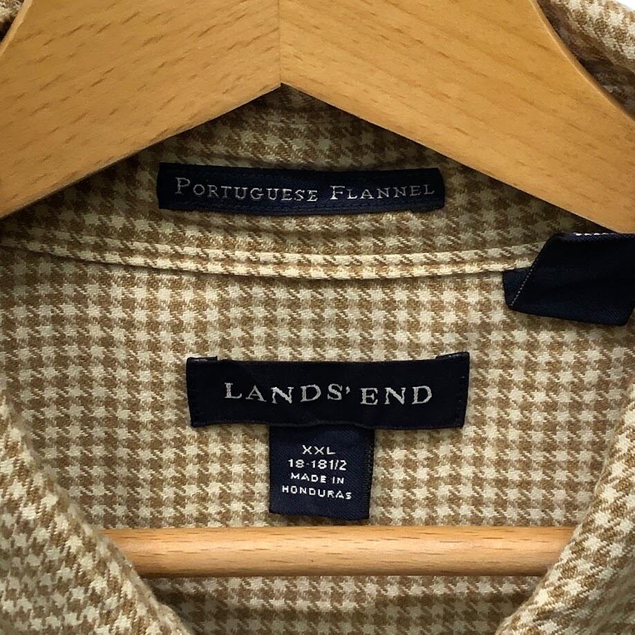 LAND'S END ランズエンド フランネルシャツ 長袖 シャツ ボタンダウン Honduras製 XXLサイズ ブラウン ホワイト