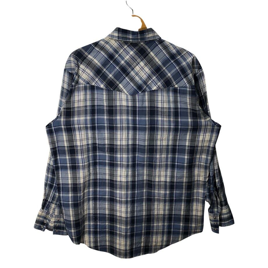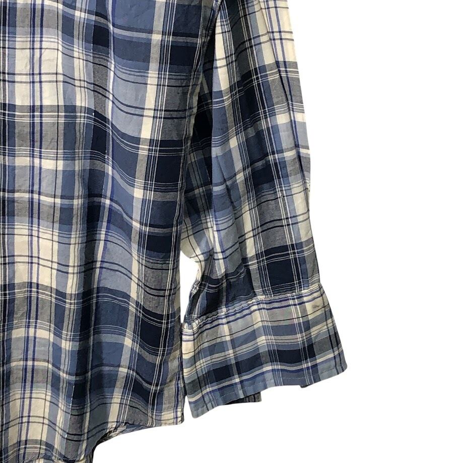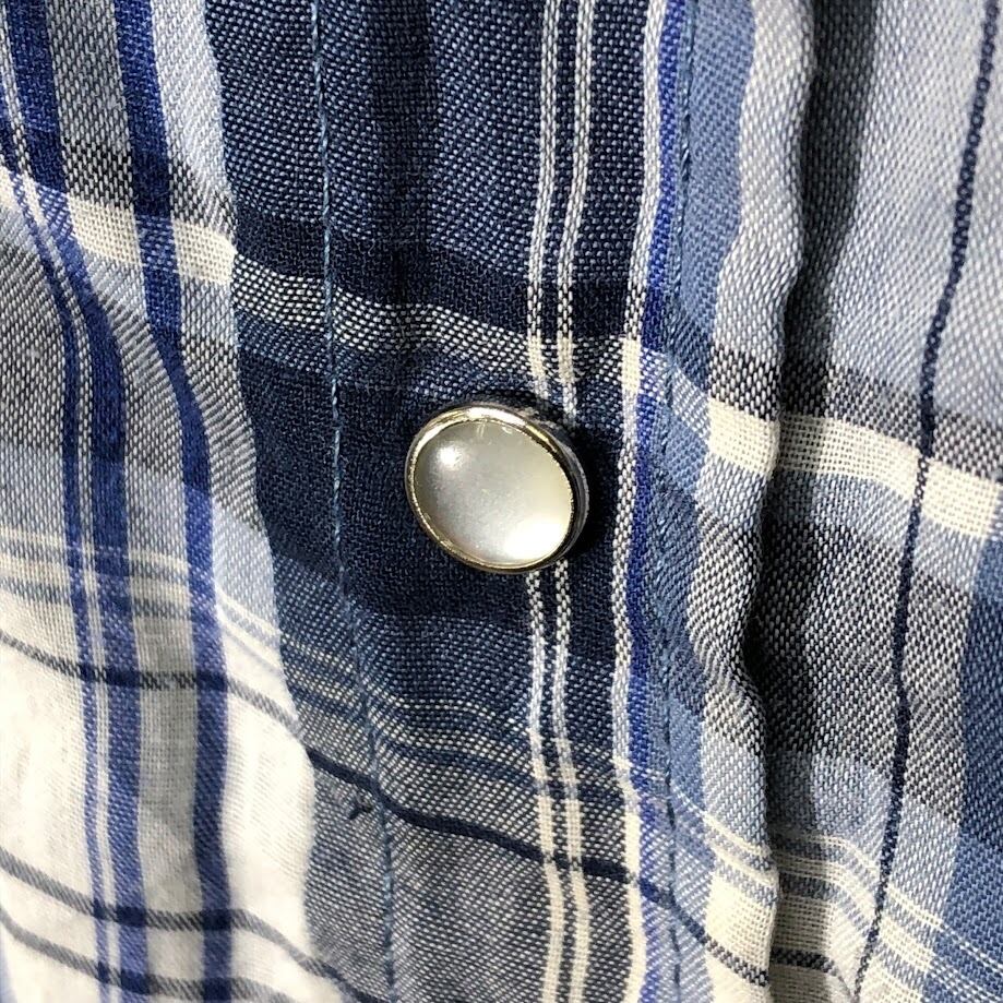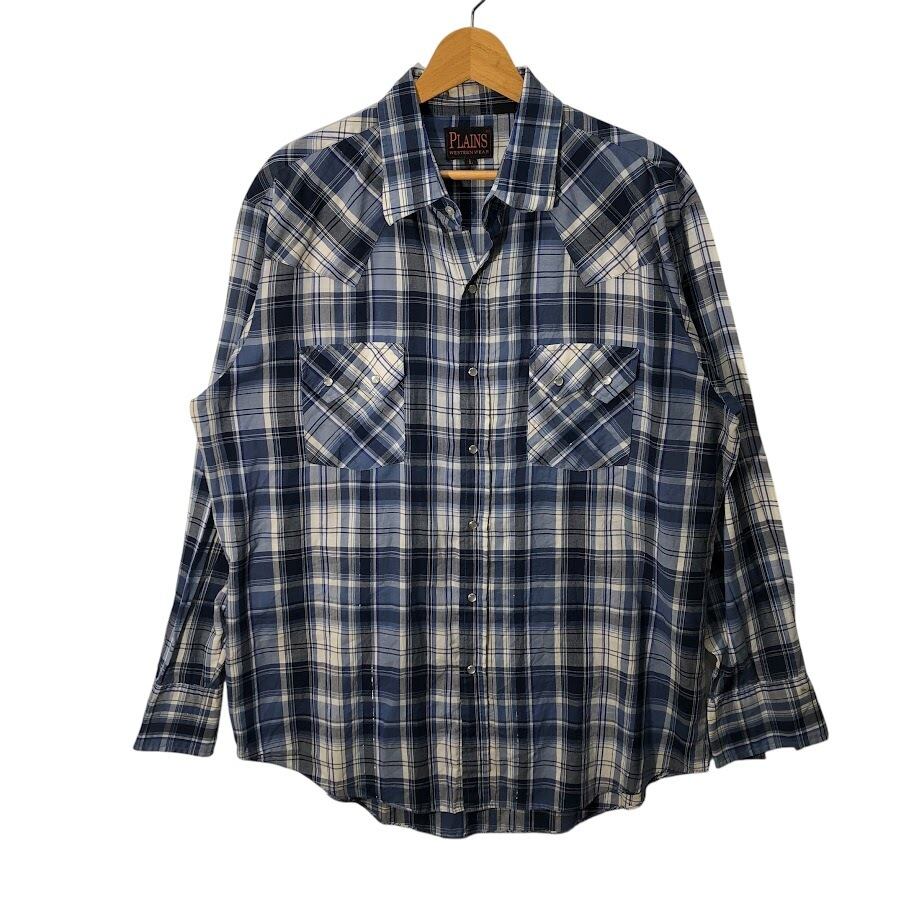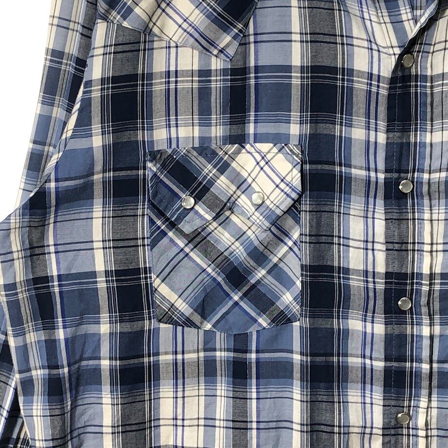 商品名:PLAINS WESTERN WEAR チェックウエスタンシャツ 長袖 シャツ スナップボタンダウン CHINA製 Lサイズ ブルー ホワイト ブラック