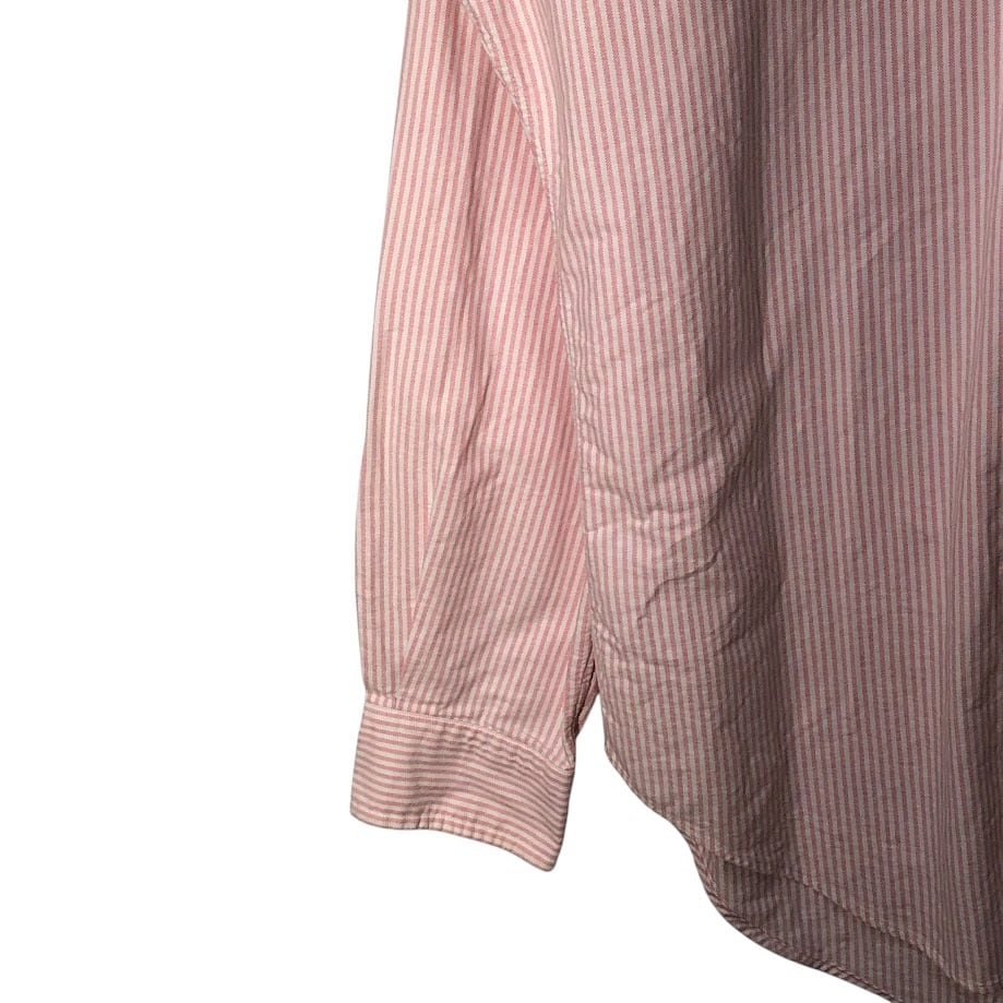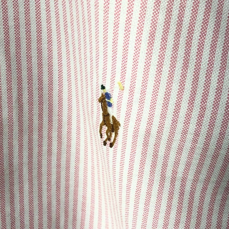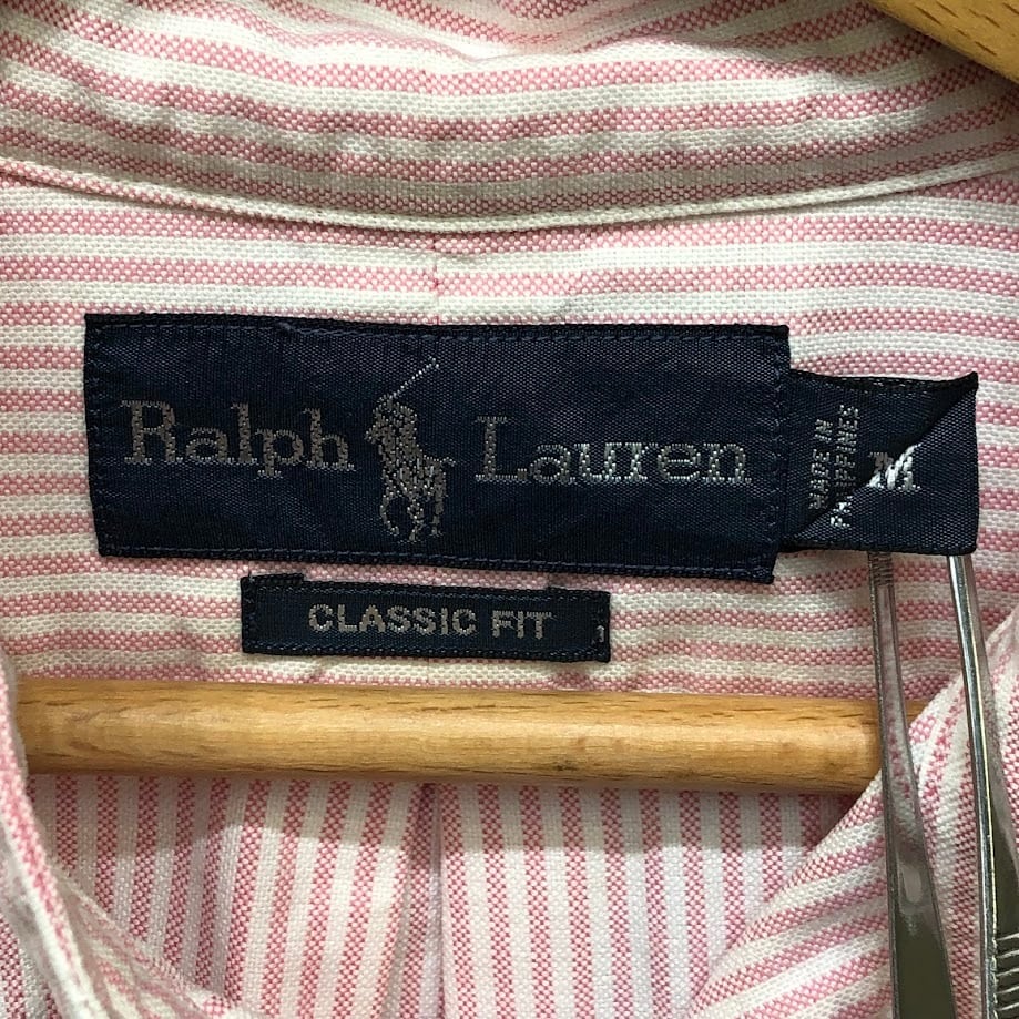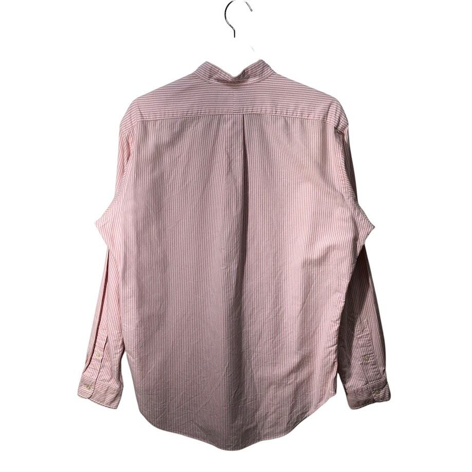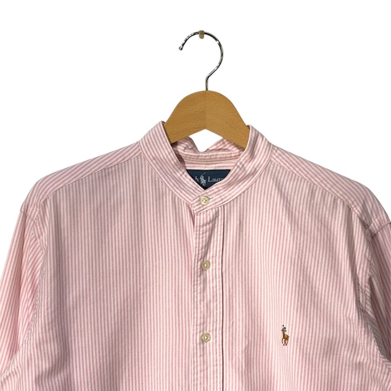 商品名:Ralph Lauren ラルフローレン CLASSIC FIT ノーカラーシャツ ストライプ柄 長袖 シャツ ボタンダウン ポニー刺繍 Philippines製 Mサイズ ピンク ホワイト