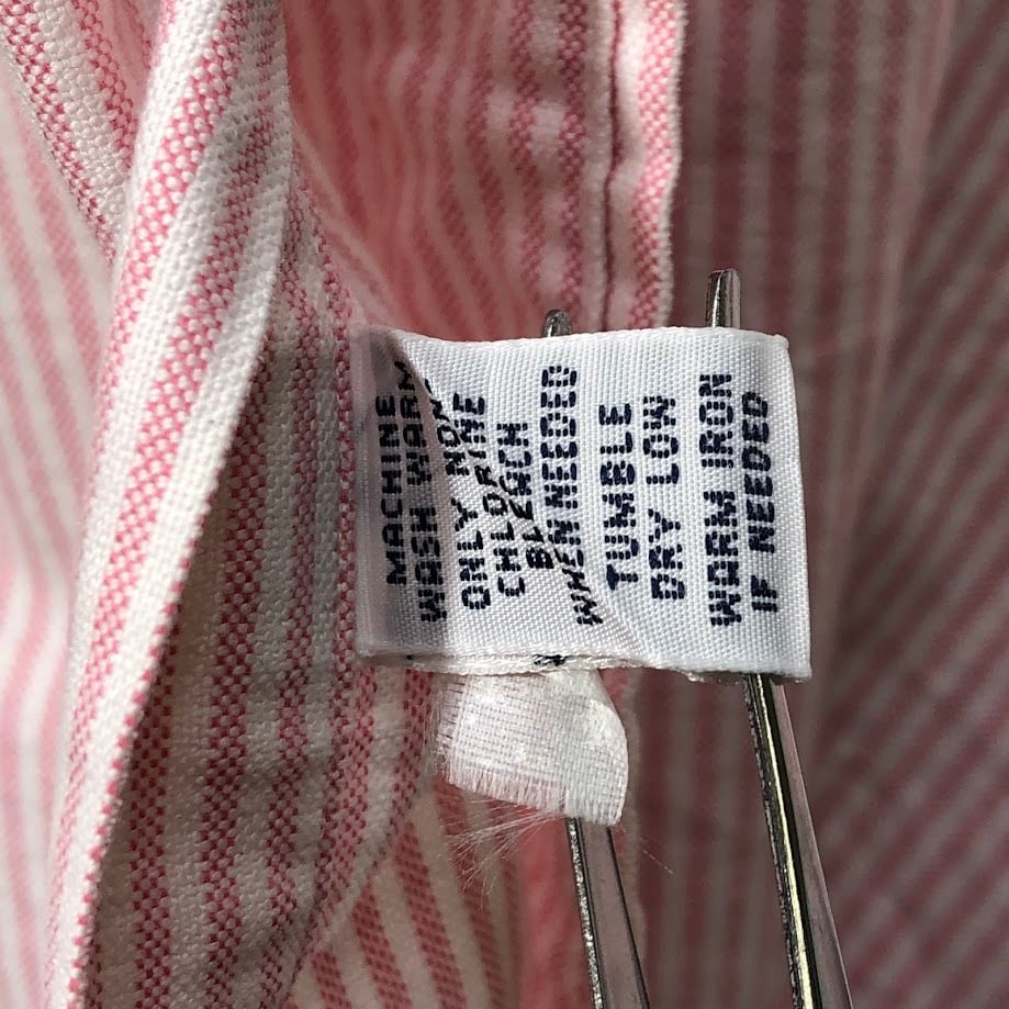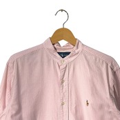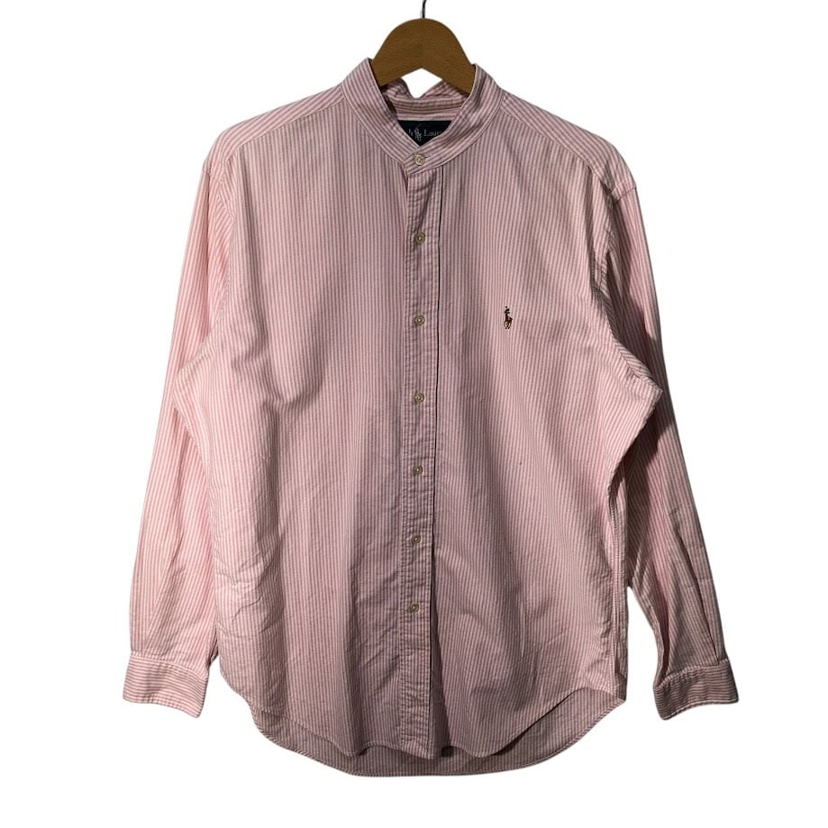 Ralph Lauren ラルフローレン CLASSIC FIT ノーカラーシャツ ストライプ柄 長袖 シャツ ボタンダウン ポニー刺繍 Philippines製 Mサイズ ピンク ホワイト