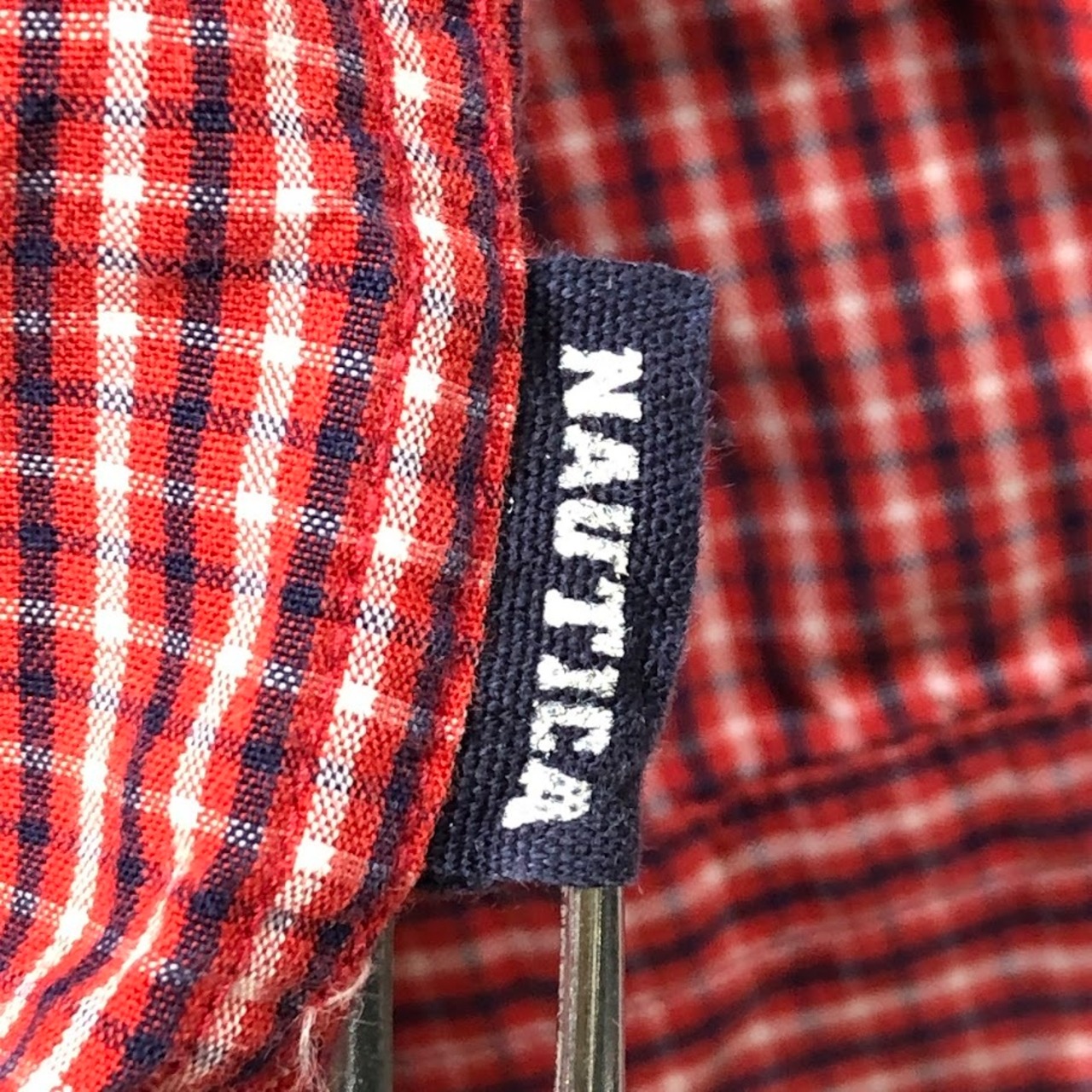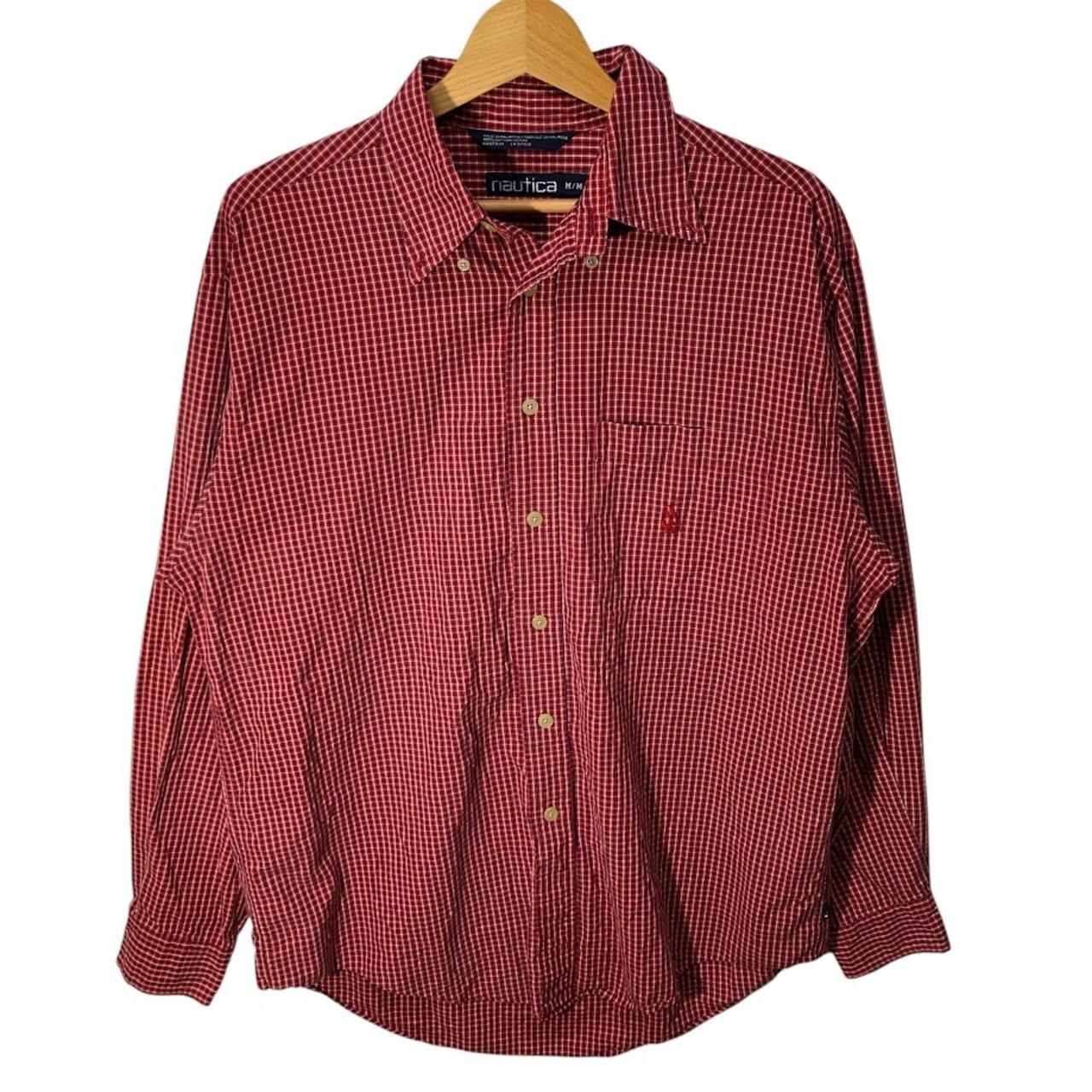 商品名:90's vintage 90年代 ヴィンテージ NAUTICA ノーティカ チェックシャツ 長袖 シャツ ボタンダウン ワンポイント刺繡 マレーシア製 Mサイズ レッド