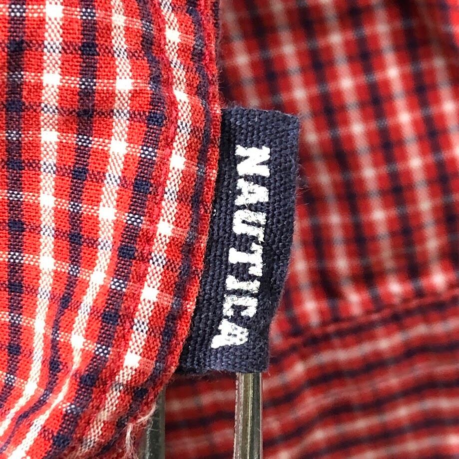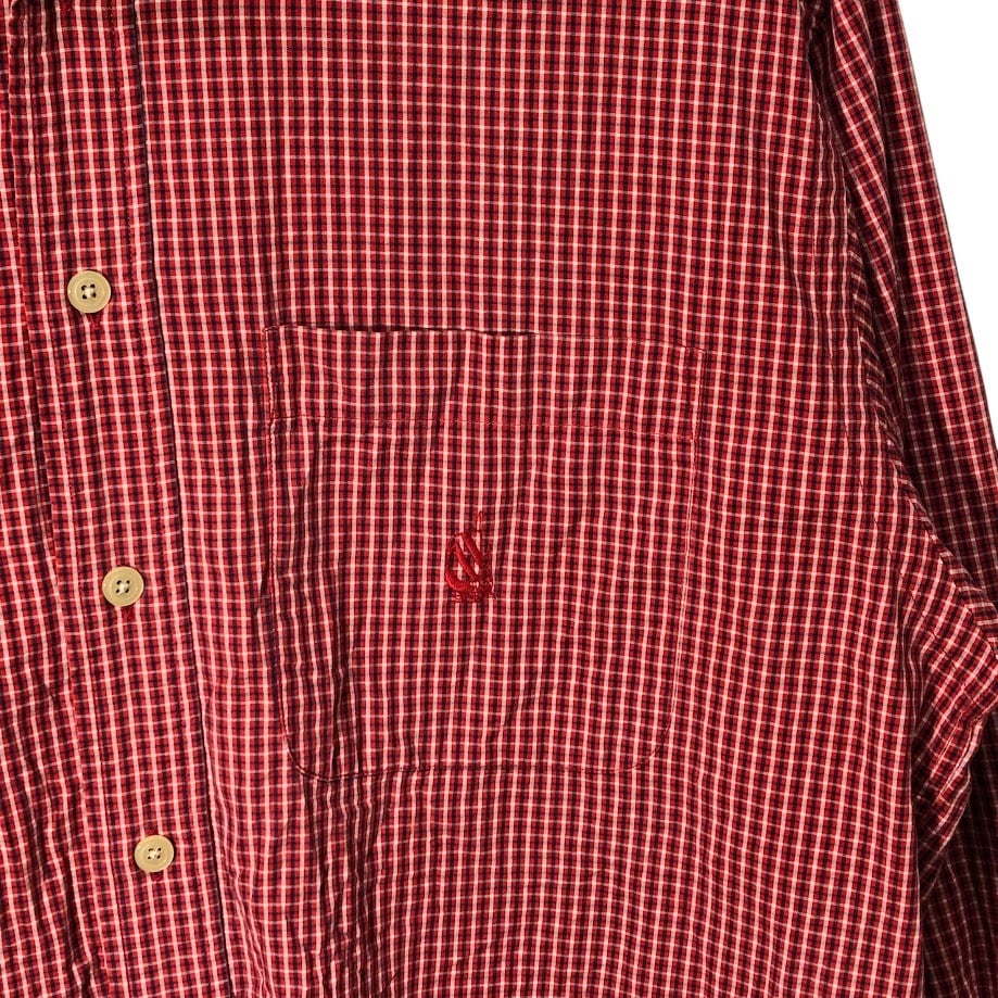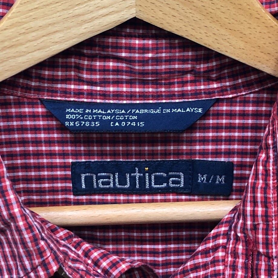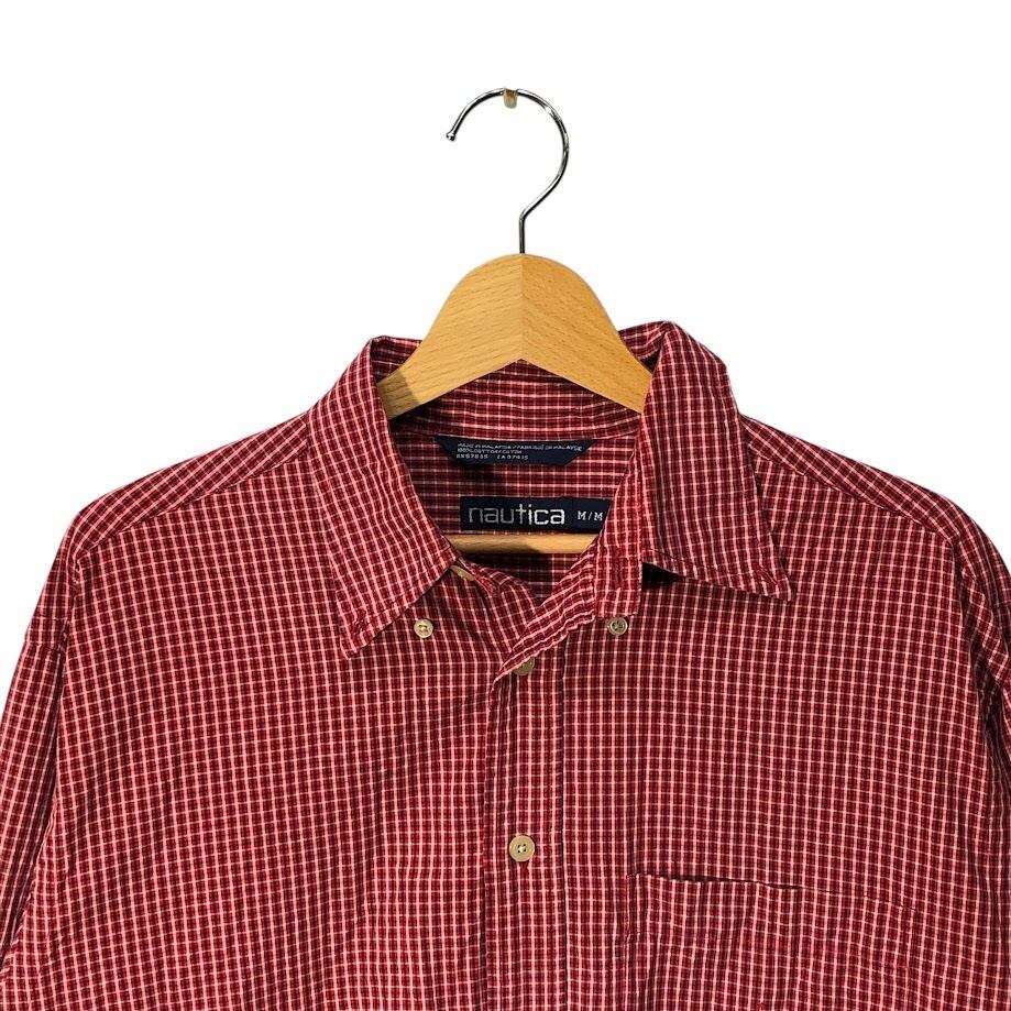 90's vintage 90年代 ヴィンテージ NAUTICA ノーティカ チェックシャツ 長袖 シャツ ボタンダウン ワンポイント刺繡 マレーシア製 Mサイズ レッド