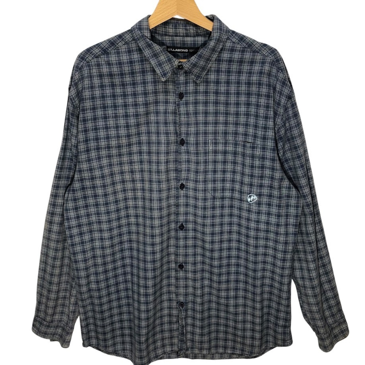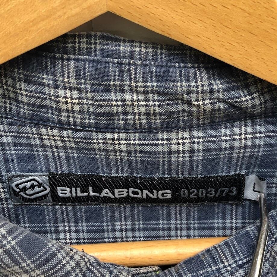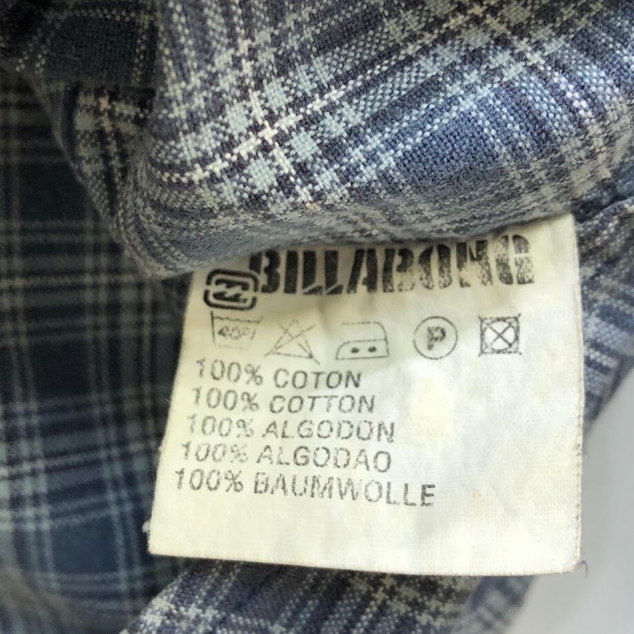 BILLABONG/ビラボン 長袖シャツ ボタンダウン チェック柄 ワンポイント刺繡 INDIA製 Lサイズ ブルー