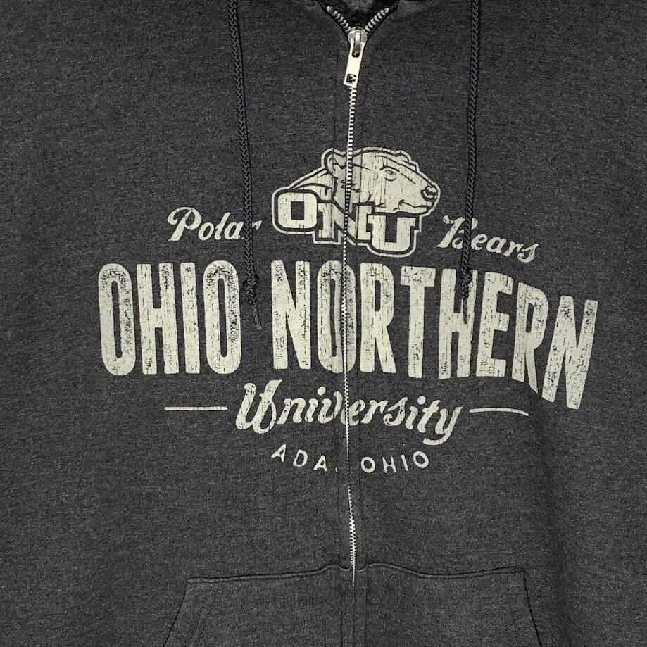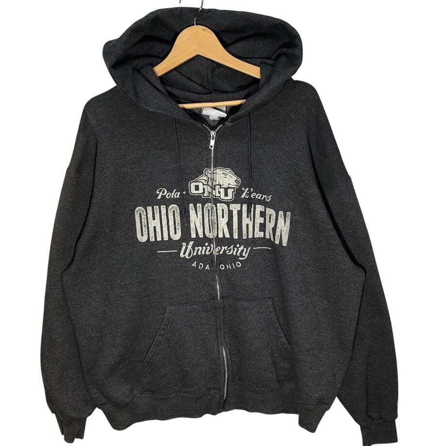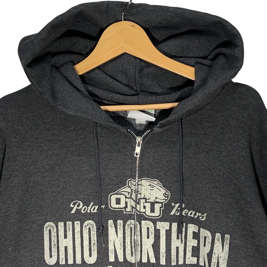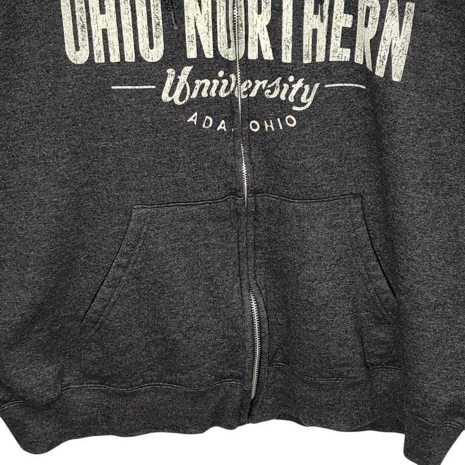 商品名:Champion /チャンピオン ジップアップパーカー カレッジプリント フード フロントプリント Honduras製 XLサイズ グレー