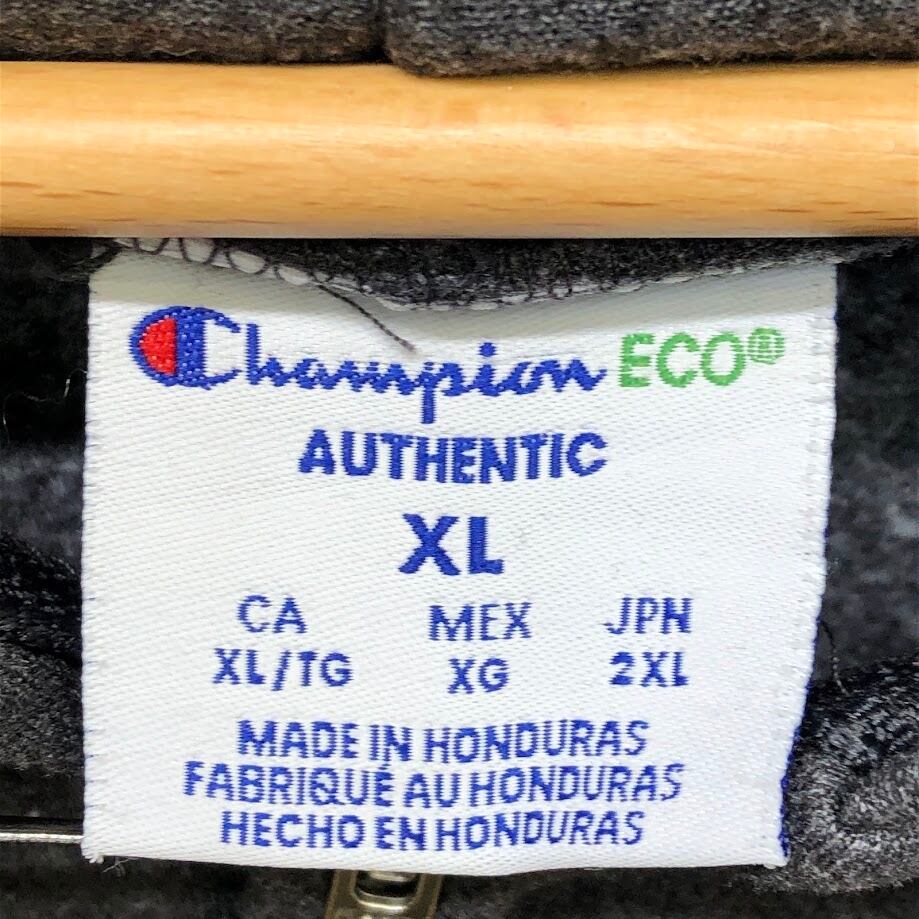 Champion /チャンピオン ジップアップパーカー カレッジプリント フード フロントプリント Honduras製 XLサイズ グレー