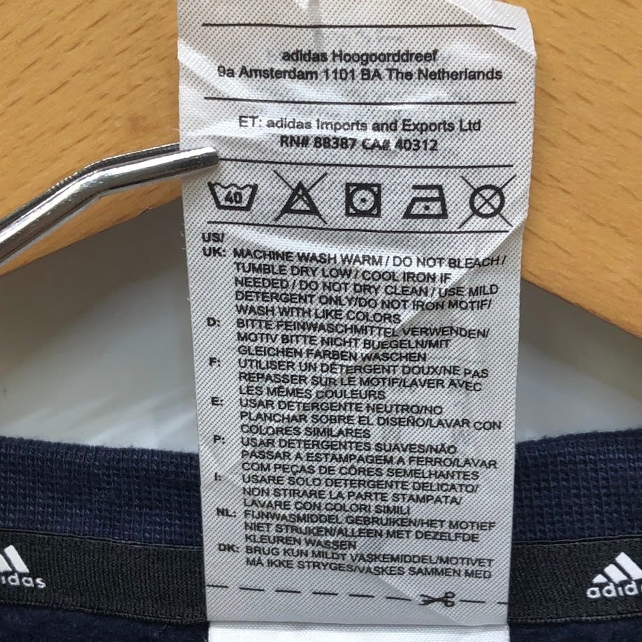 商品名:adidas/アディダス スリーライン 長袖ロンT ワンポイント刺繡 JORDAN製 Mサイズ ネイビー