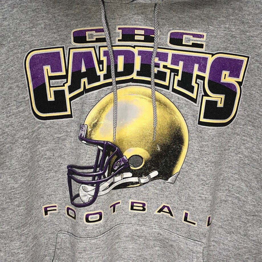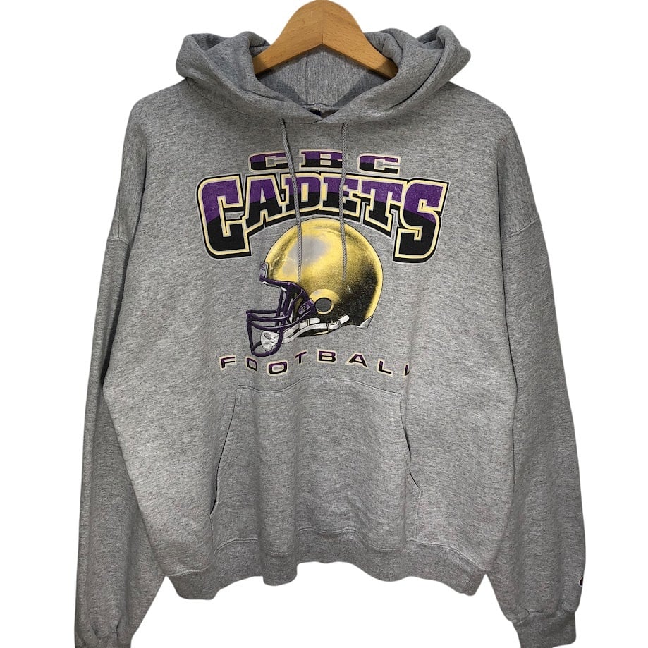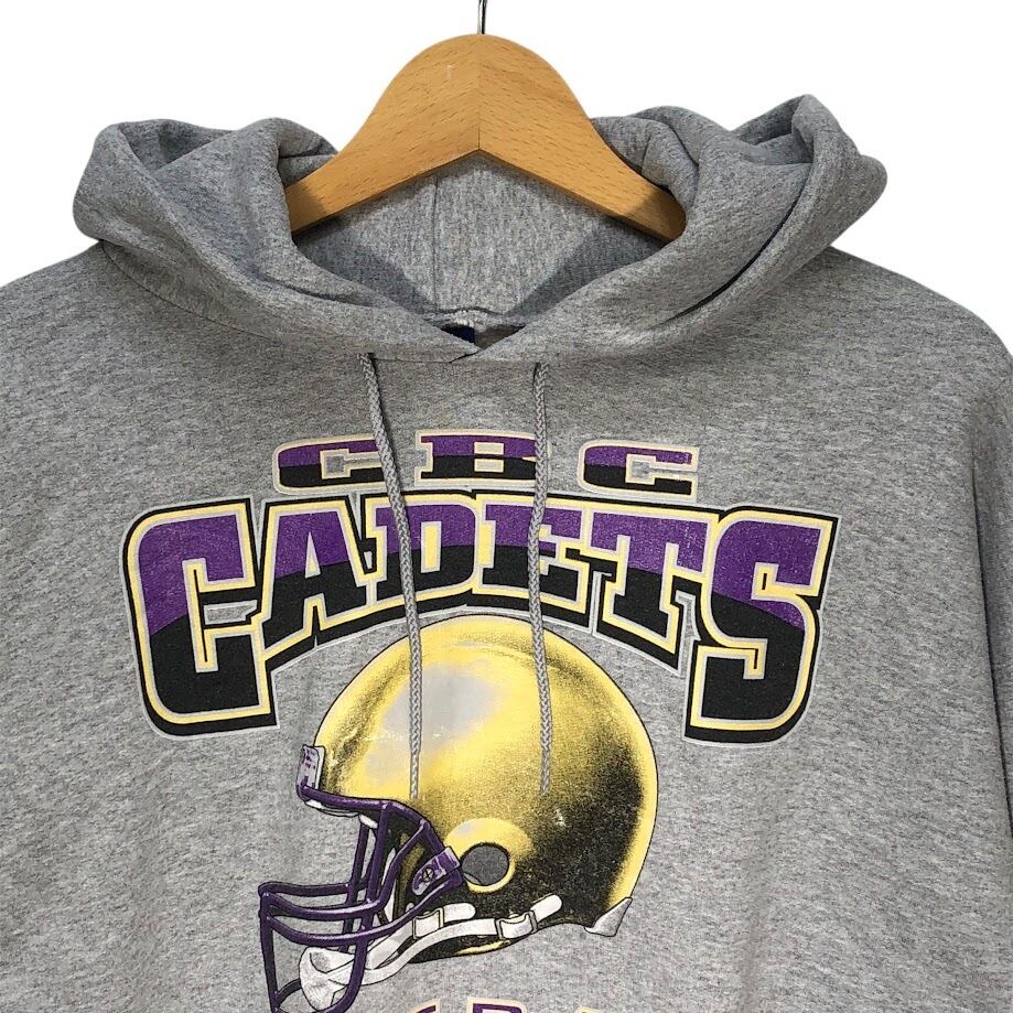 Champion /チャンピオン 00年代/00’s ヴィンテージ CBC CADETS FOOTBALL アメフトフットボールチーム スポーツ フロントプリント パーカー フーディー プルオーバー 袖刺繍 オーバーサイズ Mexico製 Lサイズ グレー