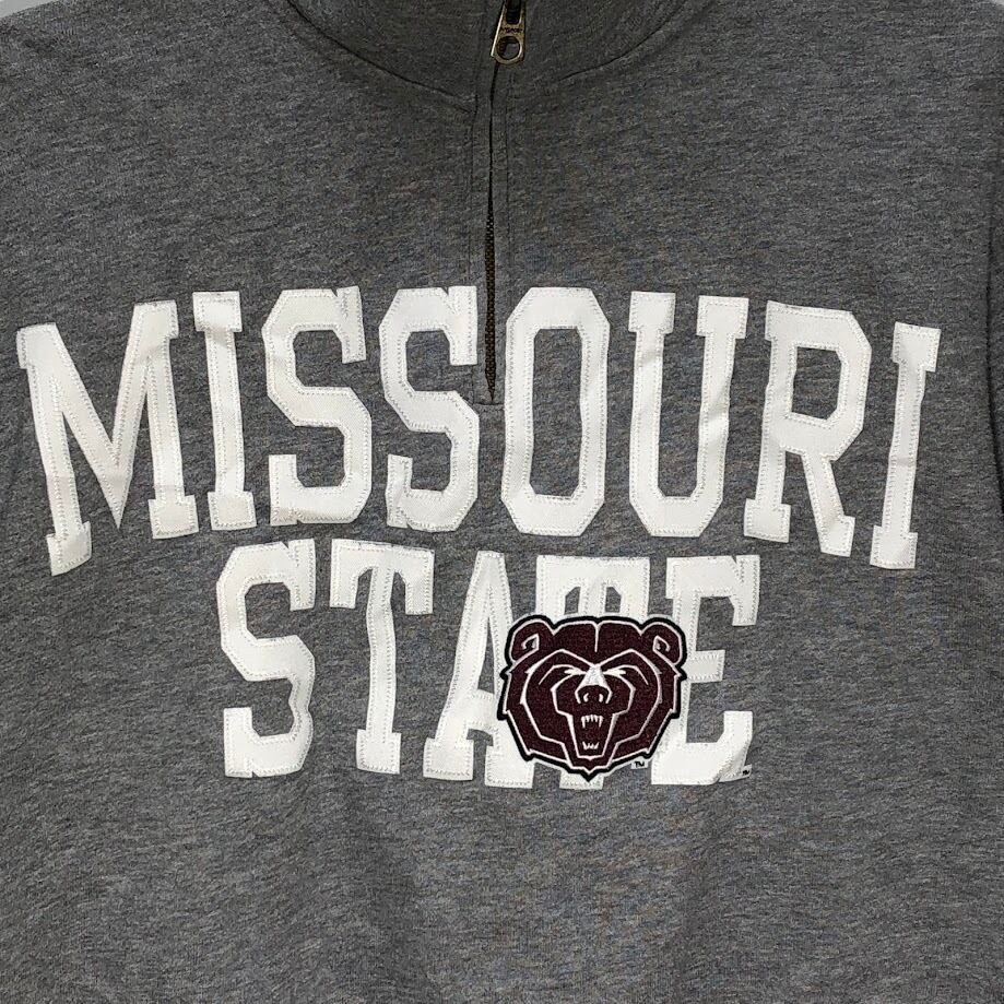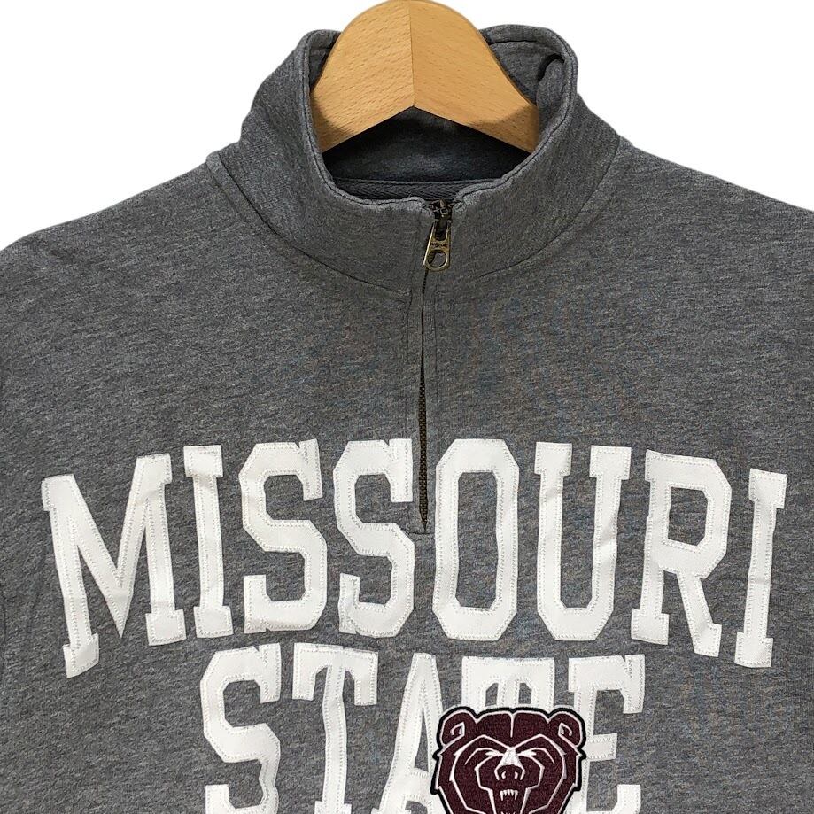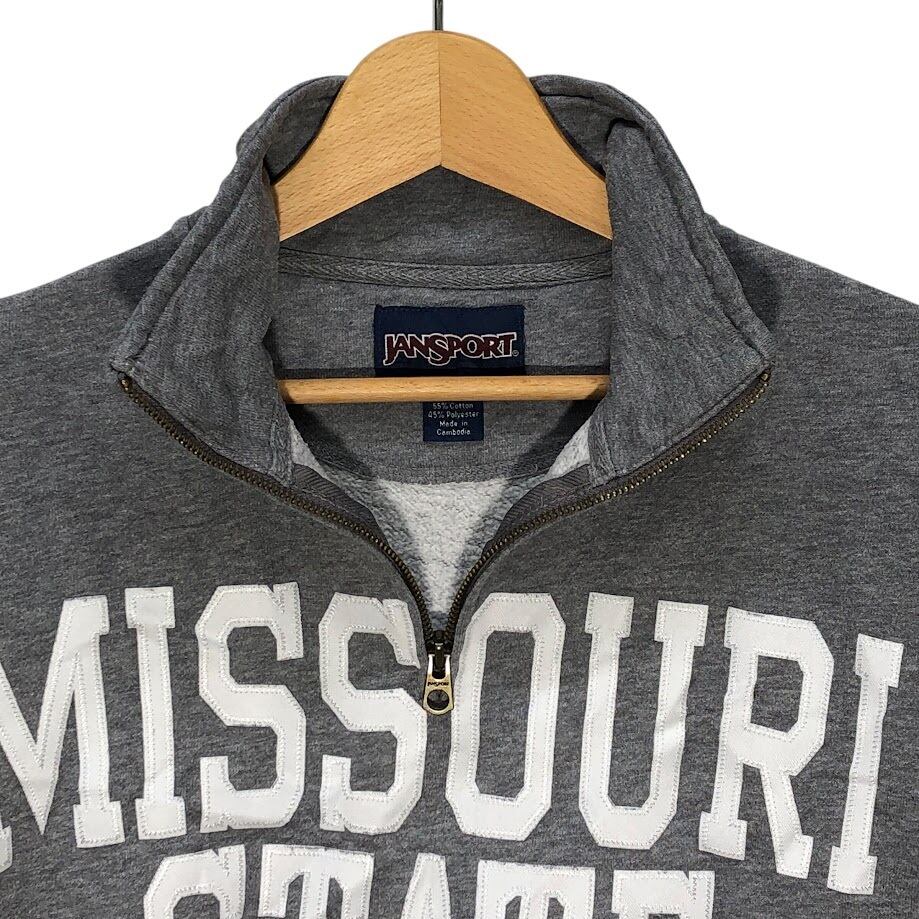 JANSPORT/ジャンスポーツ MISSOURI STATE ミズーリ州立大学 カレッジ刺繡 ハーフジップ スウェット トレーナー 長袖 フロント刺繡 カンボジア製 Sサイズ グレー