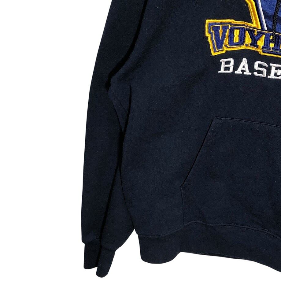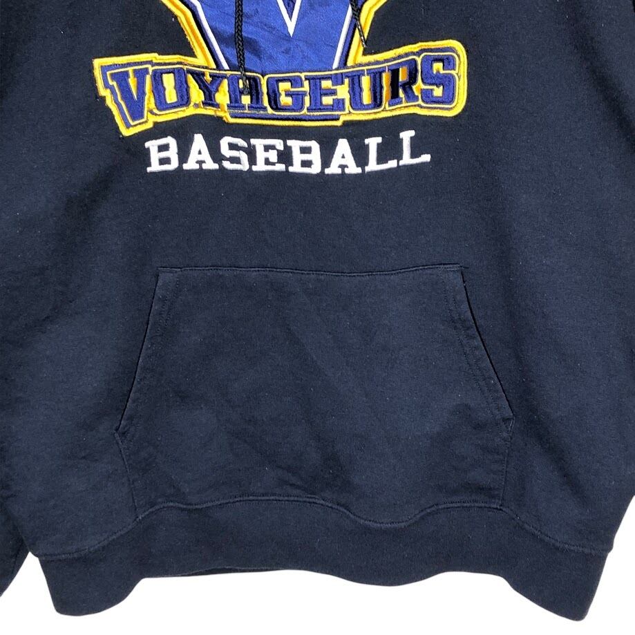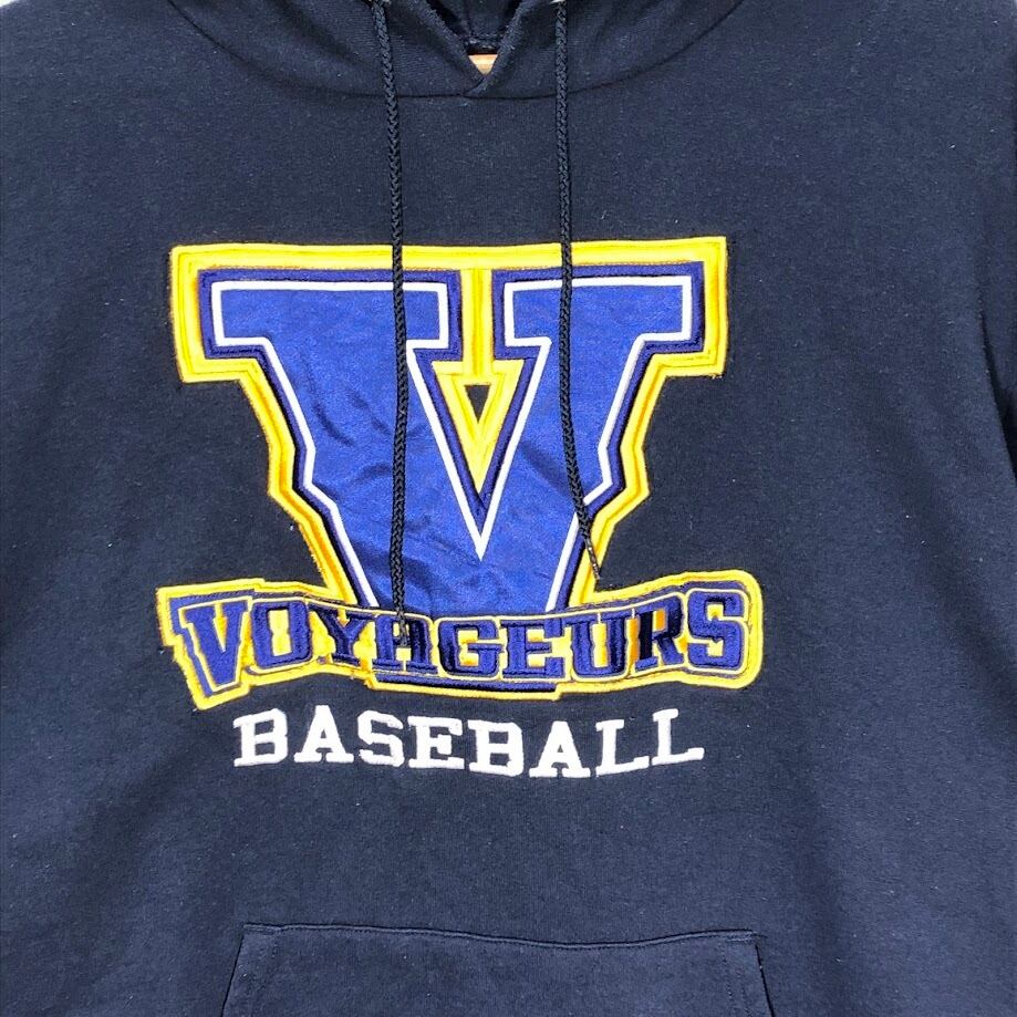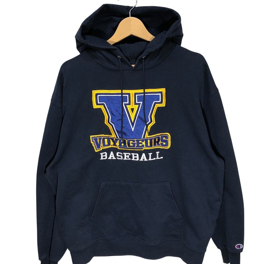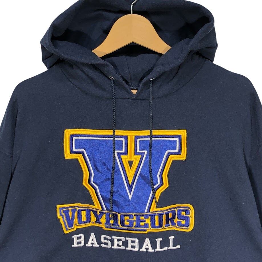 Champion /チャンピオン BASEBALL VOYAGEURS ボヤジュールジュ ベースボール カレッジ パーカー フーディー プルオーバー フロント刺繡 袖刺繍 オーバーサイズ ビッグシルエット Guatemala製 XLサイズネイビー