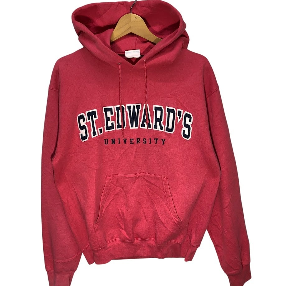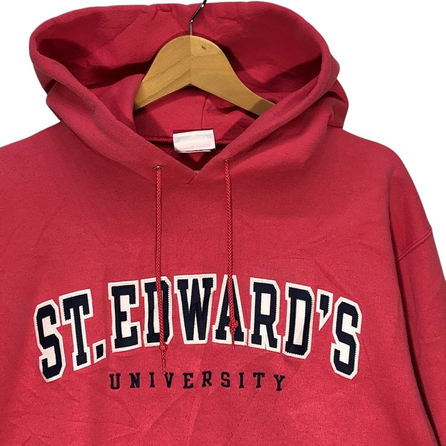 Champion /チャンピオン 00年代/00’s ヴィンテージ ST.EDWARD’S UNIUERSITY カレッジ刺繡 パーカー フーディー プルオーバー 長袖 フロント刺繡 袖刺繡 Honduras製 Mサイズ ピンク