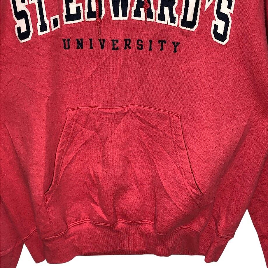 商品名:Champion /チャンピオン 00年代/00’s ヴィンテージ ST.EDWARD’S UNIUERSITY カレッジ刺繡 パーカー フーディー プルオーバー 長袖 フロント刺繡 袖刺繡 Honduras製 Mサイズ ピンク
