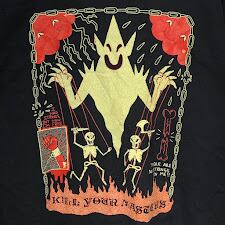 90's vintage 90年代 ヴィンテージ GILDAN ギルダン ドクロ Kill Yours Masters ガイコツ 長袖 ロンT フロント 袖プリント クルーネック Honduras製 Mサイズ ブラック