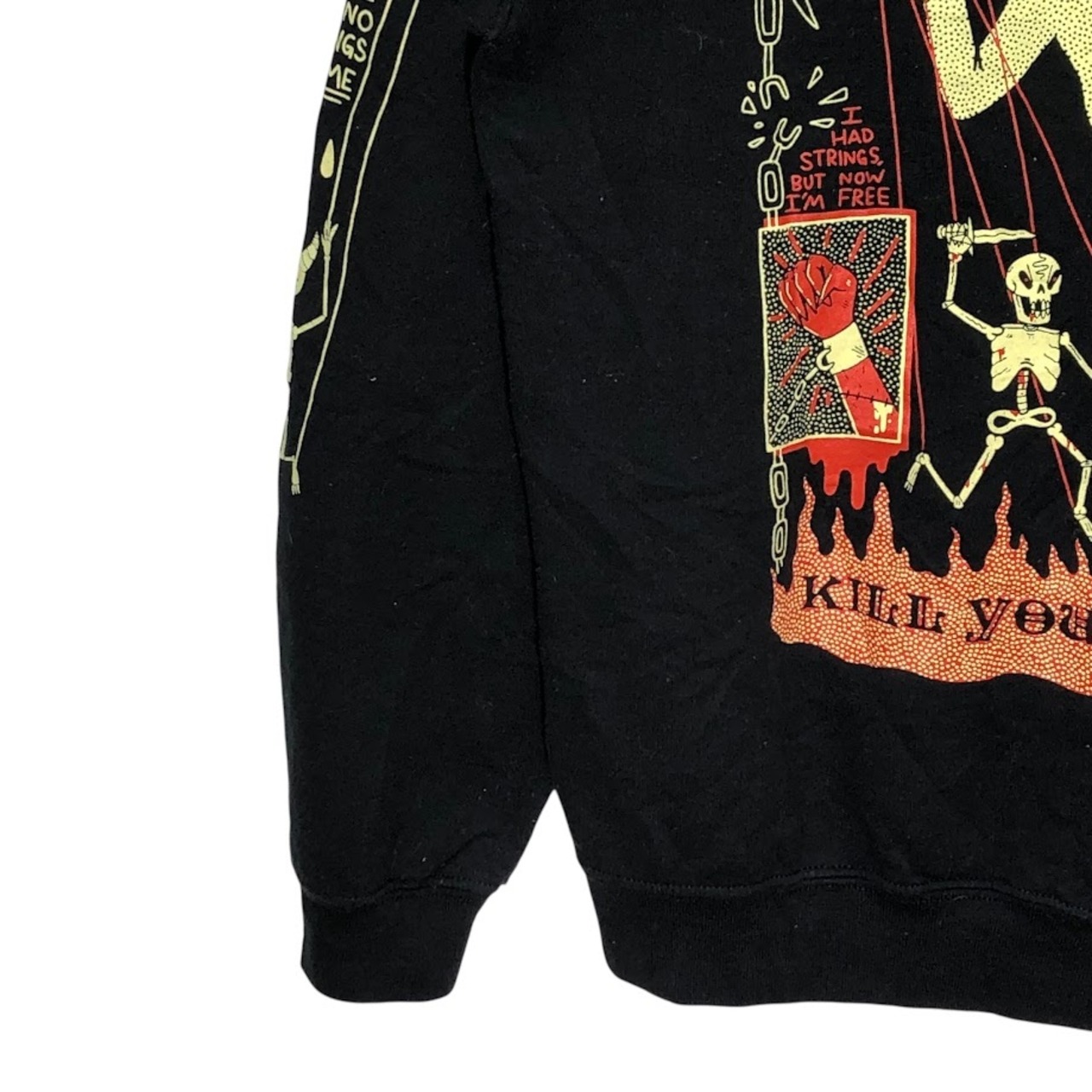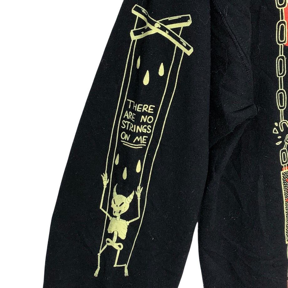 商品名:90's vintage 90年代 ヴィンテージ GILDAN ギルダン ドクロ Kill Yours Masters ガイコツ 長袖 ロンT フロント 袖プリント クルーネック Honduras製 Mサイズ ブラック
