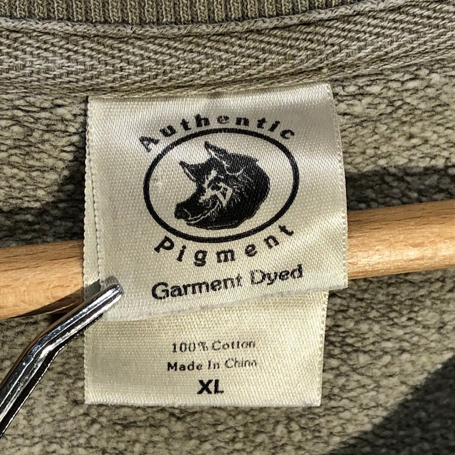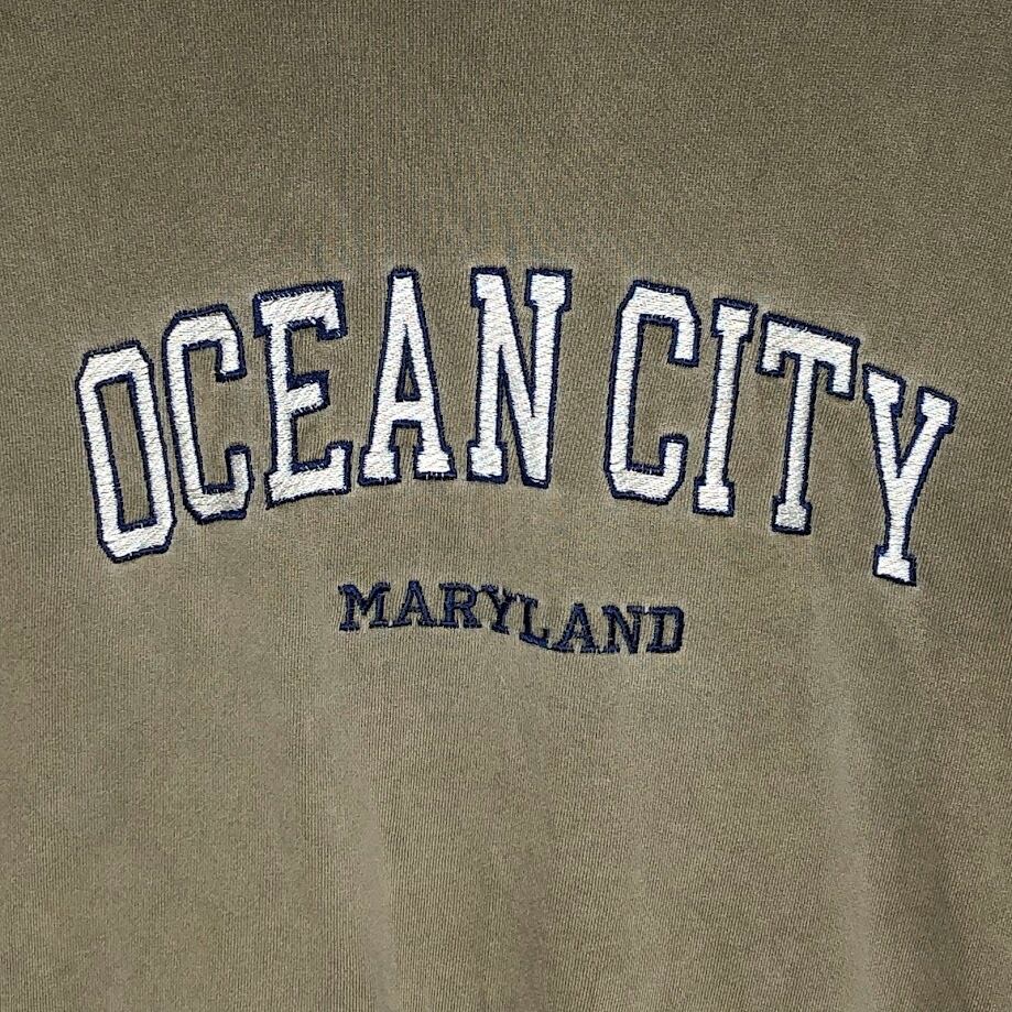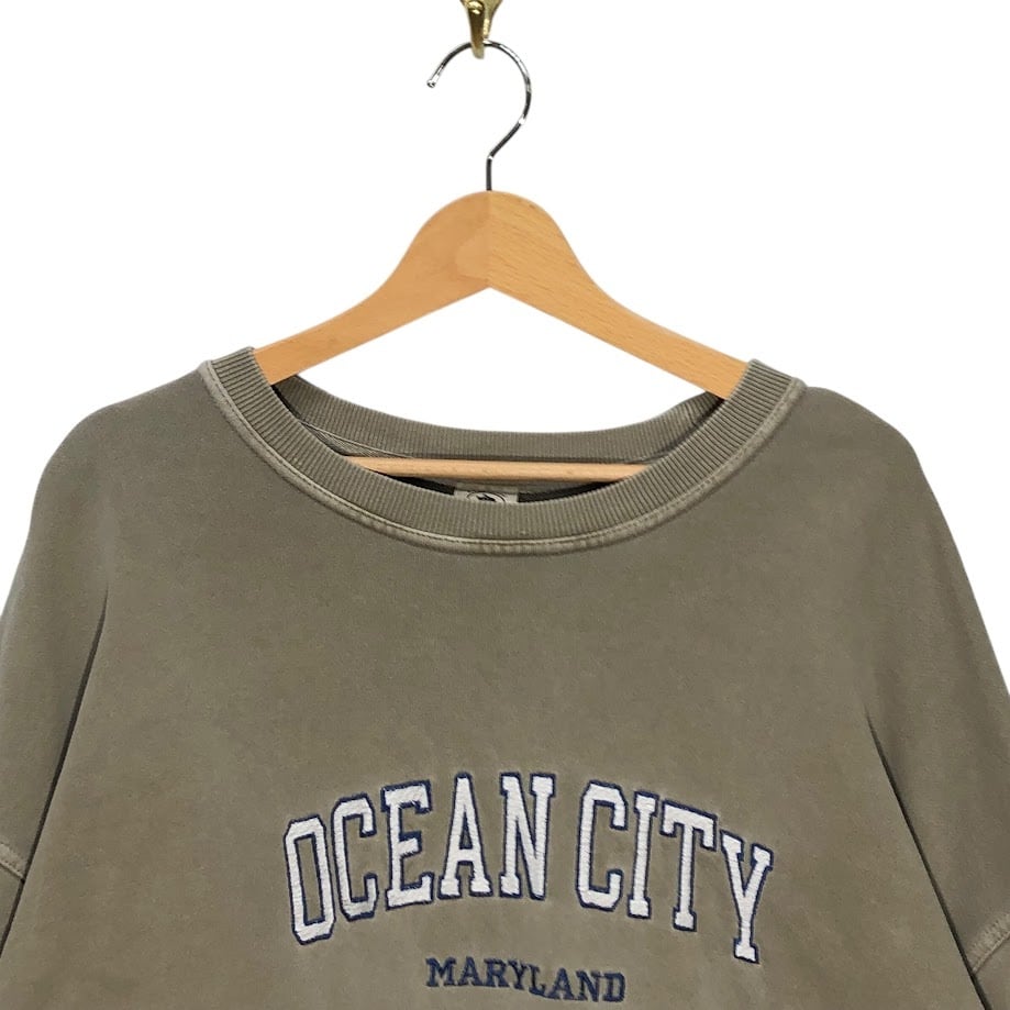 Authentic Pigment オーセンティックピグメント OCEAN CITY MARYLAND スウェット トレーナー 長袖 フロント刺繡 オーバーサイズ ビッグシルエット China製 XLサイズ ベージュ ブラウン カーキ