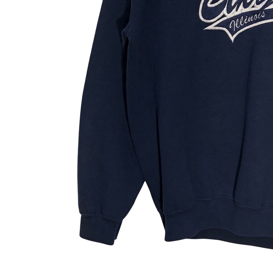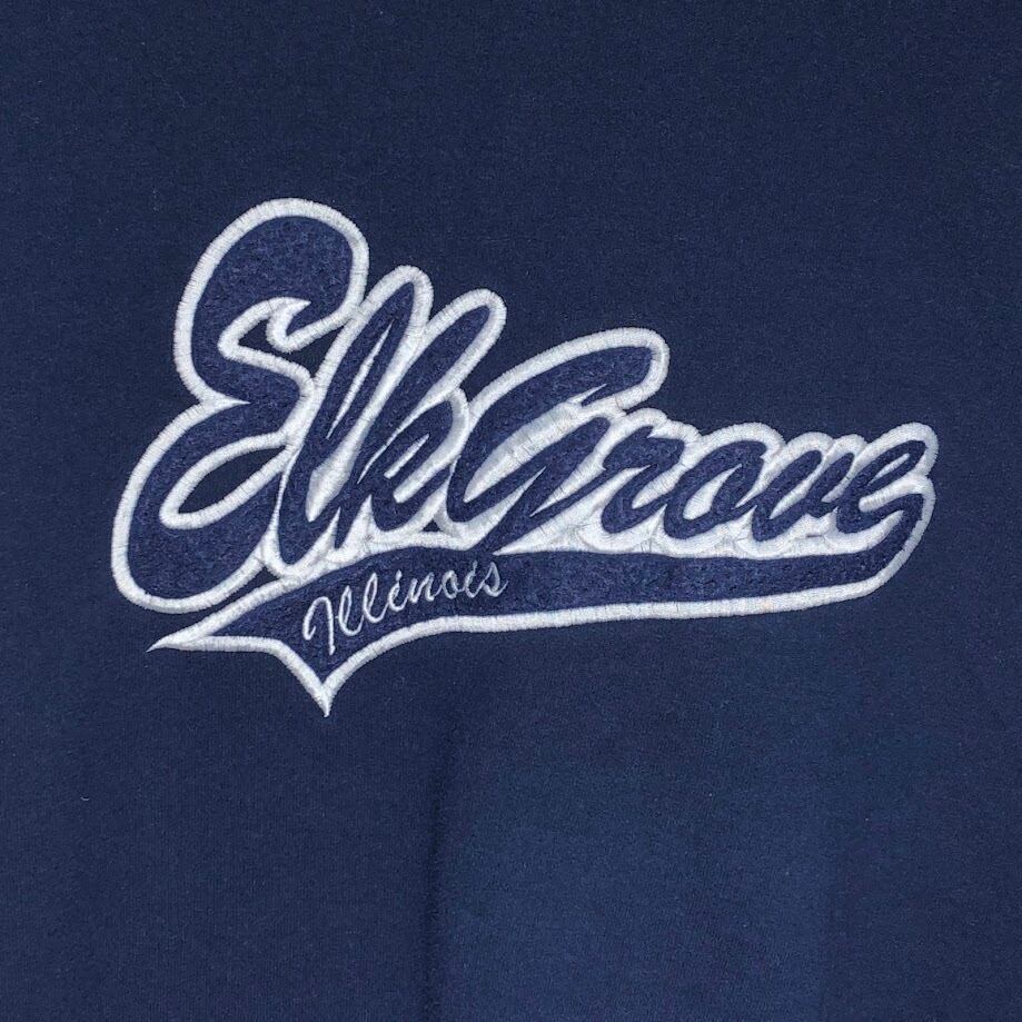 商品名:00's vintage 00年代 ヴィンテージ GILDAN ギルダン HEAVY BLEND ヘビーブレンド Elk Grove エルクグローブ スウェット トレーナー 長袖 フロント刺繡 クルーネック Mexico製 Mサイズ ネイビー